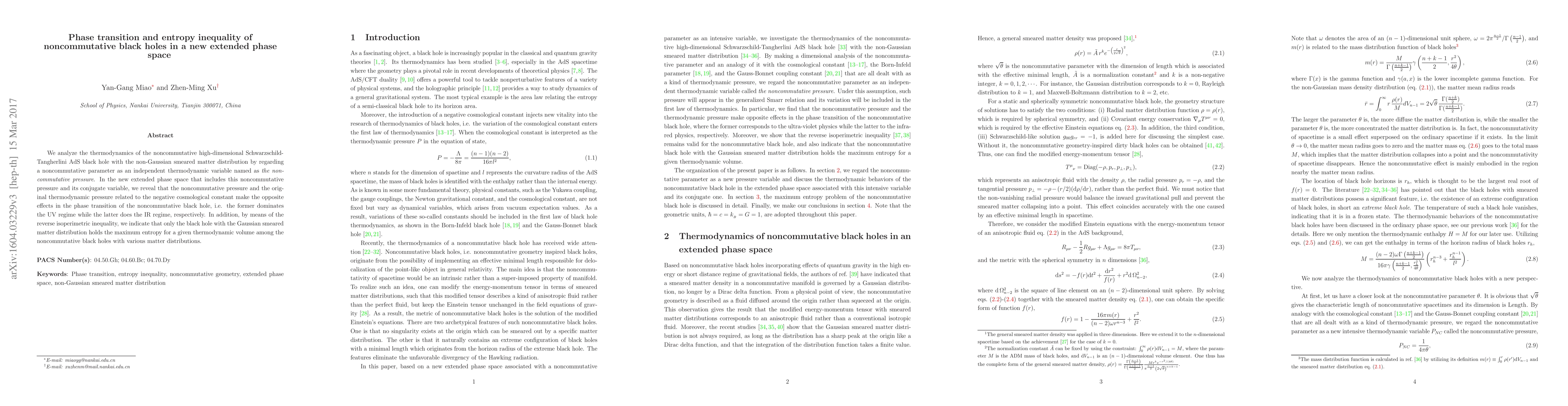 We analyze the thermodynamics of the noncommutative high-dimensional Schwarzschild-Tangherlini AdS black hole with the non-Gaussian smeared matter distribution by regarding a noncommutative parameter as an independent thermodynamic variable named as the noncommutative pressure. In the new extended phase space that includes this noncommutative pressure and its conjugate variable, we reveal that the noncommutative pressure and the original thermodynamic pressure related to the negative cosmological constant make the opposite effects in the phase transition of the noncommutative black hole, i.e. the former dominates the UV regime while the latter does the IR regime, respectively. In addition, by means of the reverse isoperimetric inequality, we indicate that only the black hole with the Gaussian smeared matter distribution holds the maximum entropy for a given thermodynamic volume among the noncommutative black holes with various matter distributions.