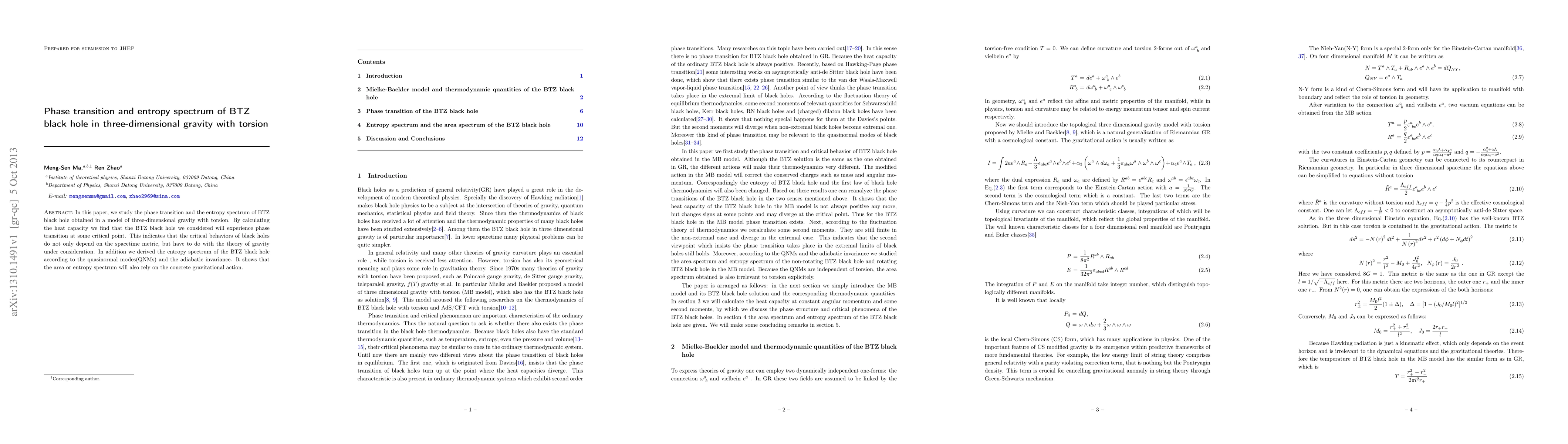 This paper investigates the phase transition and entropy spectrum of BTZ black holes in three-dimensional gravity with torsion, finding a critical point for phase transition and demonstrating that the entropy spectrum depends on the specific gravitational action and theory, not just the spacetime metric.