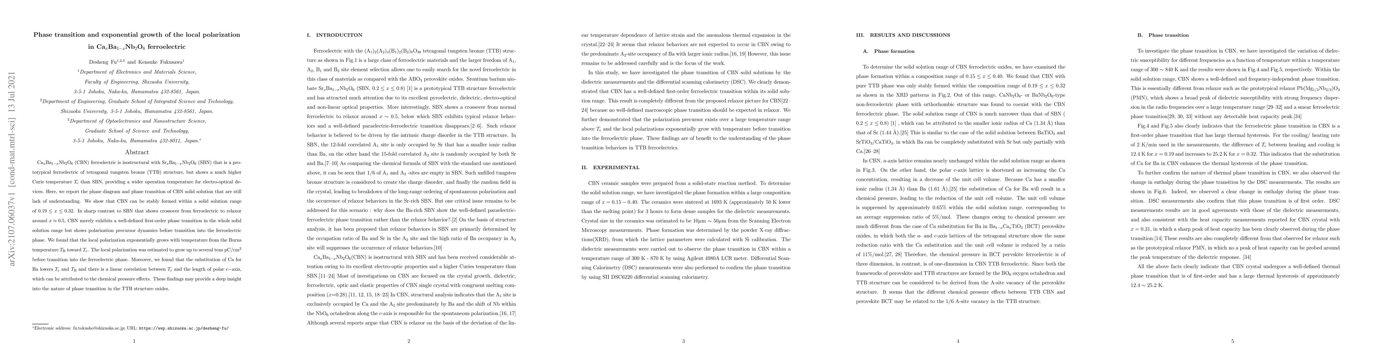 This paper investigates the phase transition and local polarization growth in CaxBa1-xNb2O6 (CBN) ferroelectrics, revealing a first-order phase transition across its solid solution range and exponential growth of local polarization towards the Curie temperature. The findings suggest a deeper understanding of phase transitions in tetragonal tungsten bronze structure oxides.