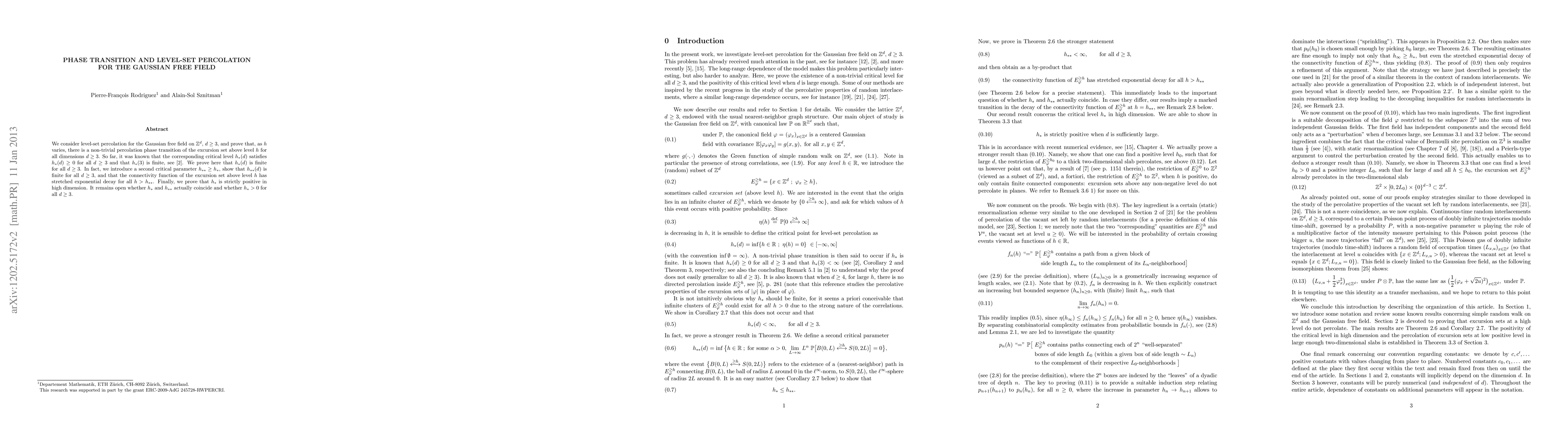 Researchers prove the existence of two critical parameters for percolation in the Gaussian free field, finding that a finite non-trivial critical level determines whether excursion sets percolate or not, with implications for understanding complex systems.
