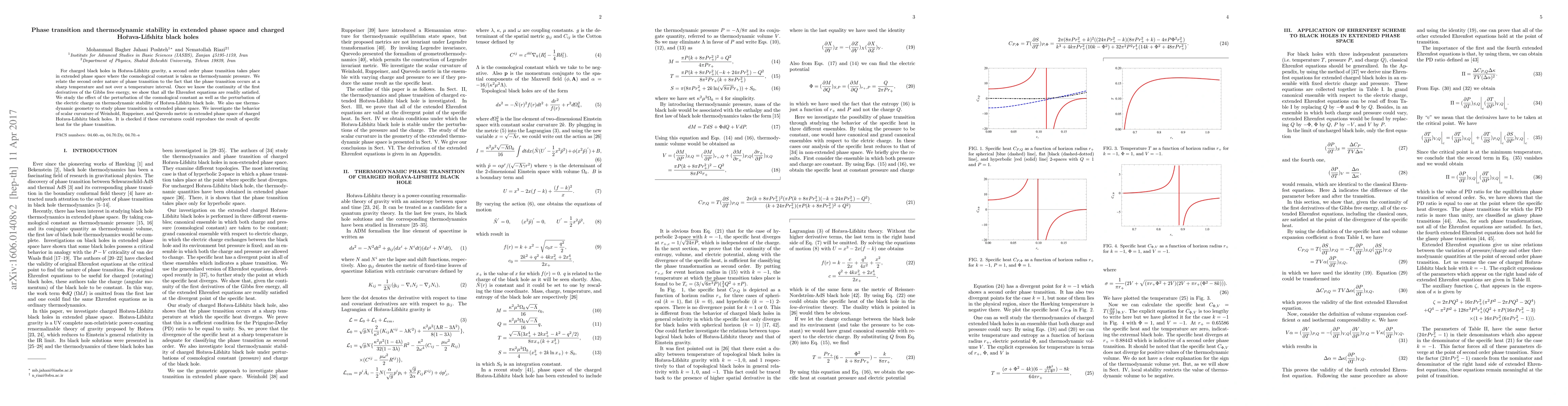 This paper investigates the phase transition and thermodynamic stability in charged Horava-Lifshitz black holes within an extended phase space, treating the cosmological constant as thermodynamic pressure. It demonstrates a second-order phase transition occurring at a sharp temperature and examines the effects of perturbations in cosmological constant and electric charge on thermodynamic stability.