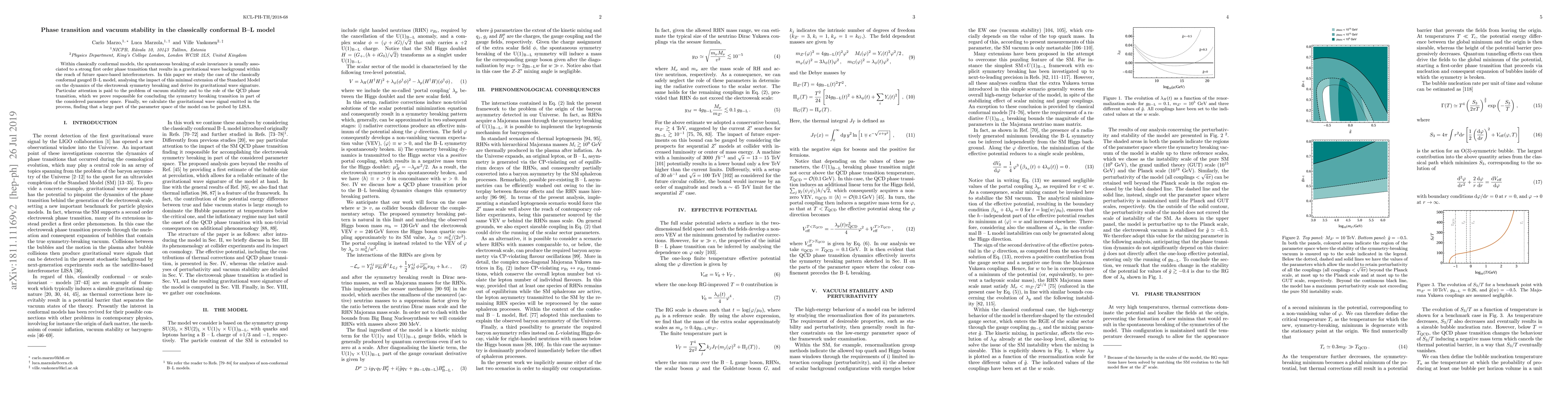 This paper investigates the classically conformal gauged B-L model, focusing on its impact on electroweak symmetry breaking dynamics and vacuum stability. It concludes that the QCD phase transition plays a crucial role in the symmetry breaking process and calculates the gravitational wave signature, suggesting that LISA could probe a significant portion of the model's parameter space.