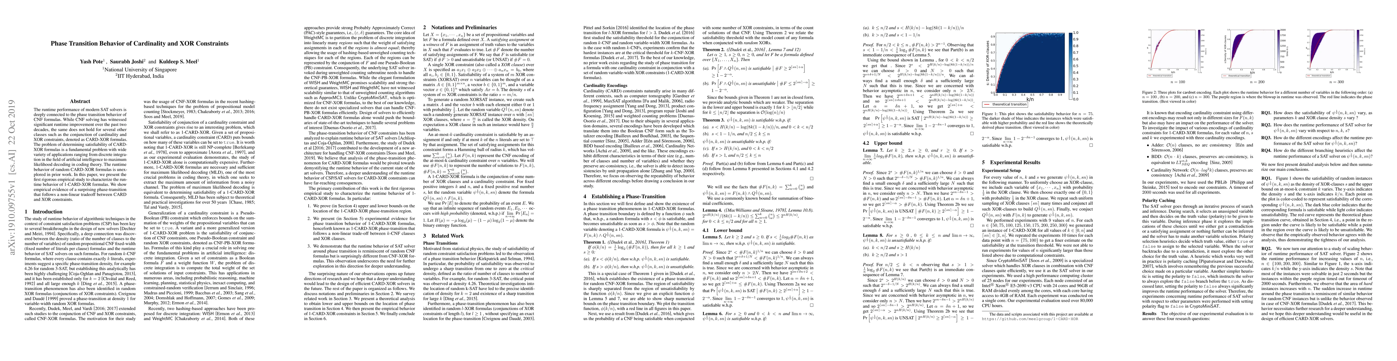 This paper investigates the runtime performance of SAT solvers on CARD-XOR formulas, revealing a previously unexplored phase transition behavior. It demonstrates a non-linear tradeoff between cardinality and XOR constraints influencing the solvers' efficiency, marking a significant step in understanding these complex constraint classes.