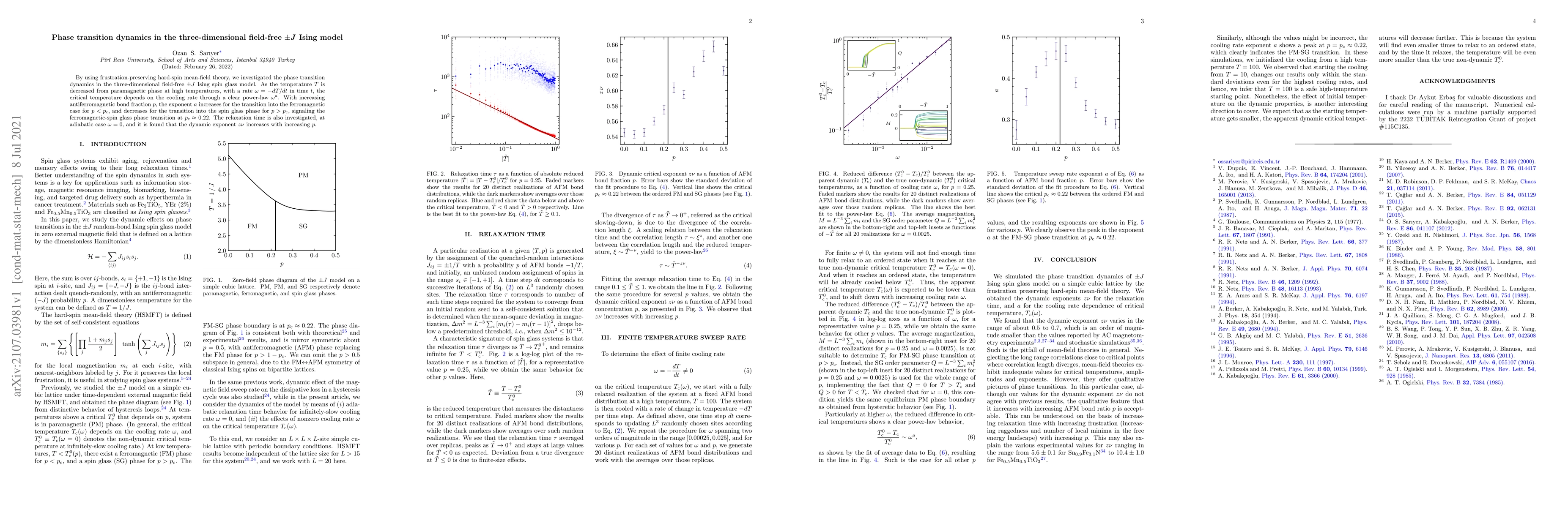 the phase transition dynamics in the three-dimensional field-free $\pm J$ Ising