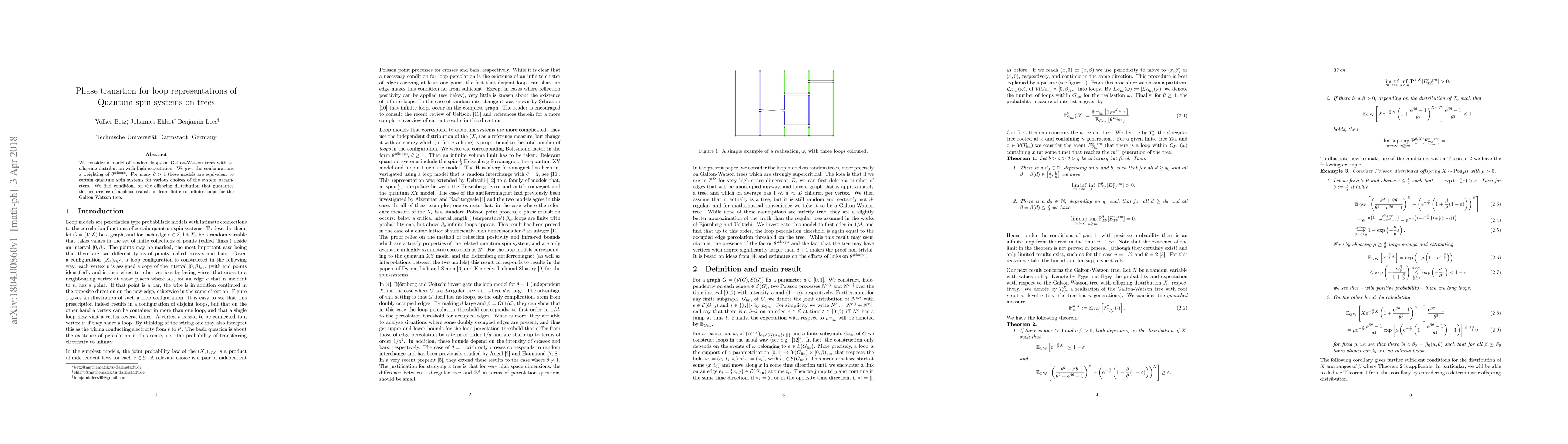 The study reveals a connection between random loop models on Galton-Watson trees and certain quantum spin systems, with implications for understanding phase transitions in complex systems.