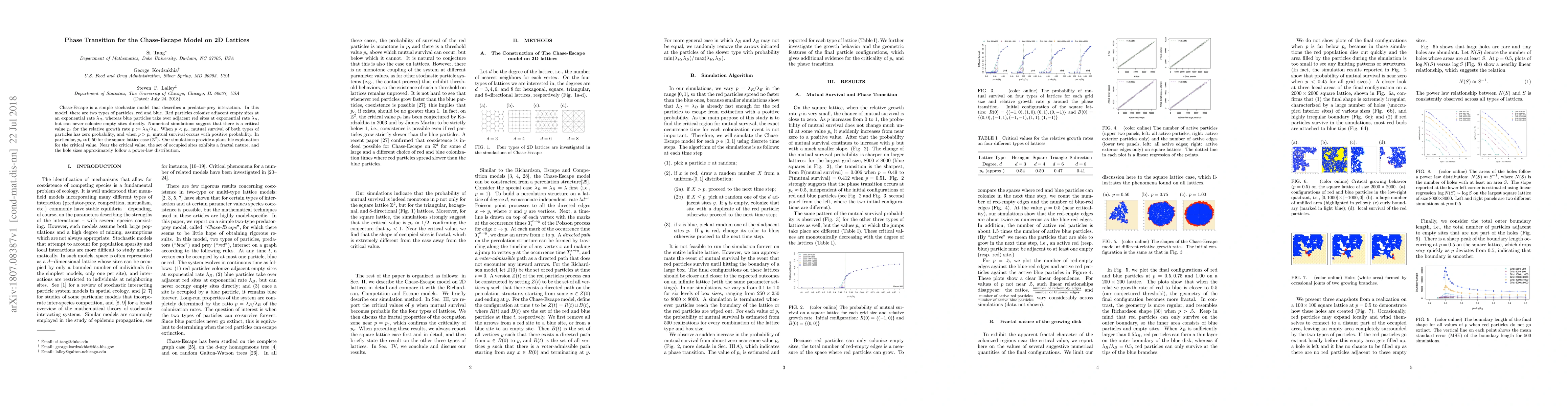 Chase-Escape is a simple stochastic model that describes a predator-prey
