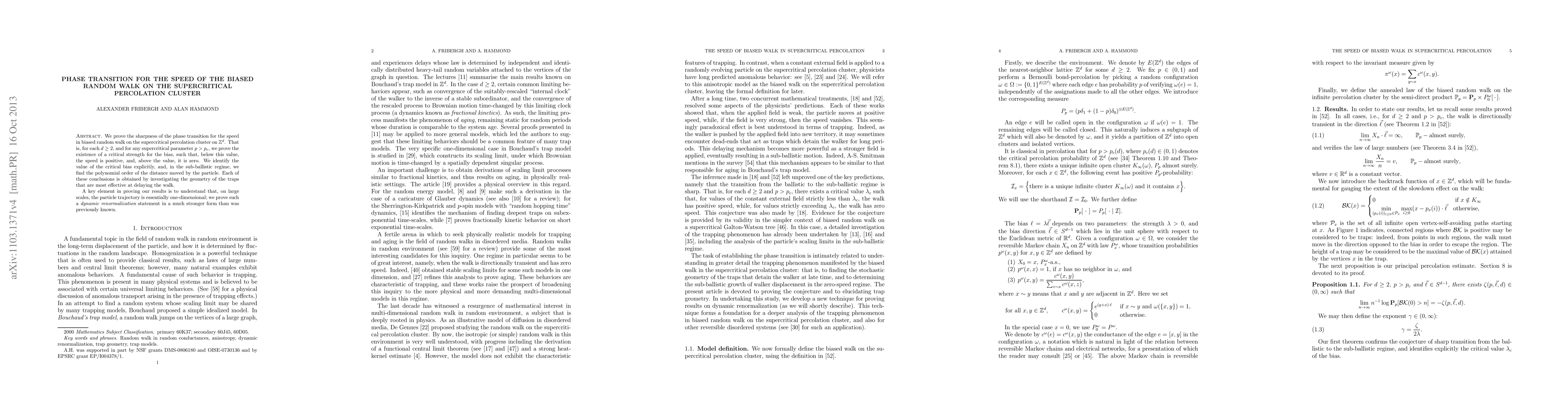 The research paper proves that a critical strength exists for biased random walks on supercritical percolation clusters in d dimensions, above which the speed is zero, and below which it's positive; a key finding of this work is that the particle trajectory becomes essentially one-dimensional on large scales.