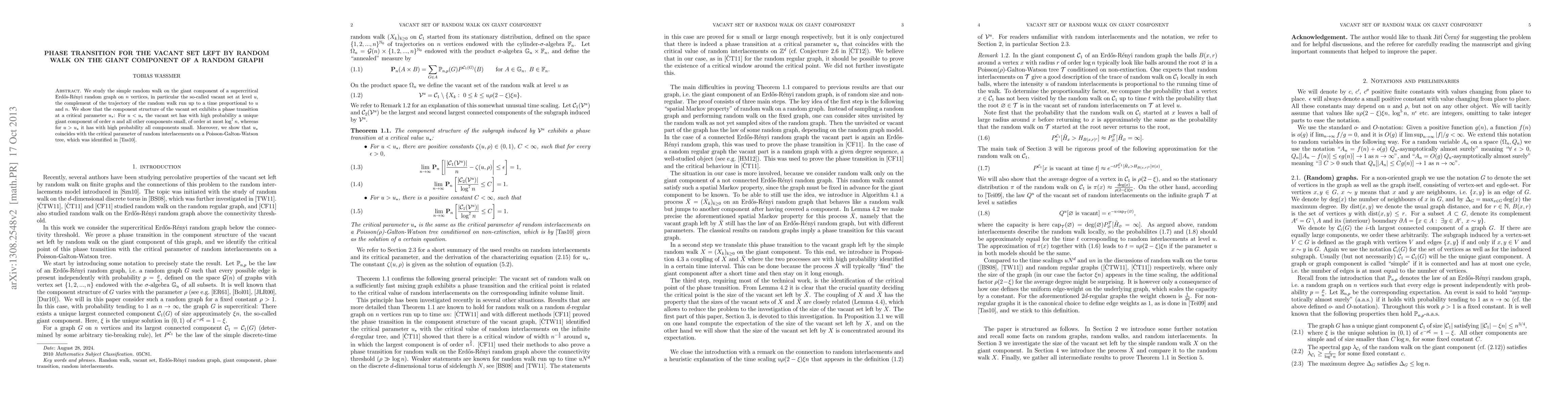 vacant set at level $u$, the complement of the trajectory of the random walk