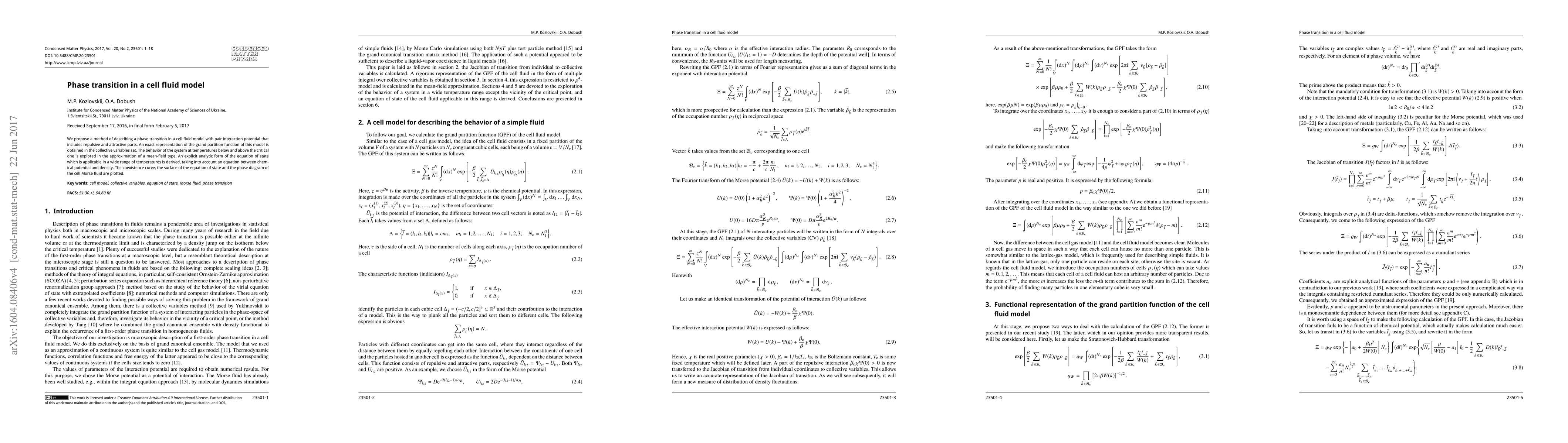 We propose a method of describing a phase transition in a cell fluid model with pair interaction potential that includes repulsive and attractive parts. An exact representation of the grand partition function of this model is obtained in the collective variables set. The behavior of the system at temperatures below and above the critical one is explored in the approximation of a mean-field type. An explicit analytic form of the equation of state which is applicable in a wide range of temperatures is derived, taking into account an equation between chemical potential and density. The coexistence curve, the surface of the equation of state and the phase diagram of the cell Morse fluid are plotted.