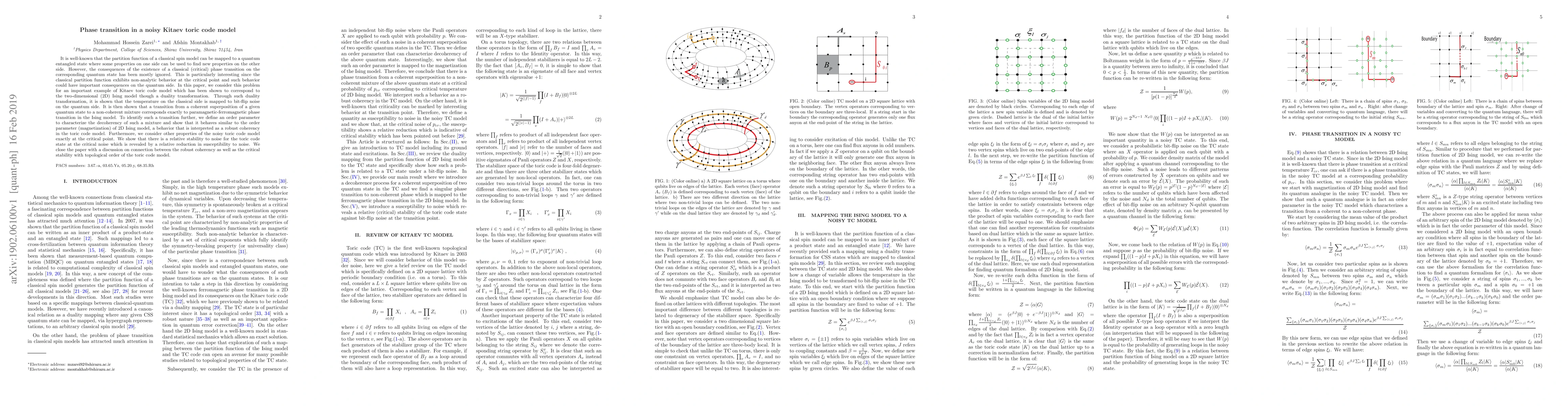 It is well-known that the partition function of a classical spin model can be mapped to a quantum entangled state where some properties on one side can be used to find new properties on the other side. However, the consequences of the existence of a classical (critical) phase transition on the corresponding quantum state has been mostly ignored. This is particularly interesting since the classical partition function exhibits non-analytic behavior at the critical point and such behavior could have important consequences on the quantum side. In this paper, we consider this problem for an important example of Kitaev toric code model which has been shown to correspond to the two-dimensional (2D) Ising model though a duality transformation. Through such duality transformation, it is shown that the temperature on the classical side is mapped to bit-flip noise on the quantum side. It is then shown that a transition from a coherent superposition of a given quantum state to a non-coherent mixture corresponds exactly to paramagnetic-ferromagnetic phase transition in the Ising model. To identify such a transition further, we define an order parameter to characterize the decoherency of such a mixture and show that it behaves similar to the order parameter (magnetization) of 2D Ising model, a behavior that is interpreted as a robust coherency in the toric code model. Furthermore, we consider other properties of the noisy toric code model exactly at the critical point. We show that there is a relative stability to noise for the toric code state at the critical noise which is revealed by a relative reduction in susceptibility to noise. We close the paper with a discussion on connection between the robust coherency as well as the critical stability with topological order of the toric code model.
