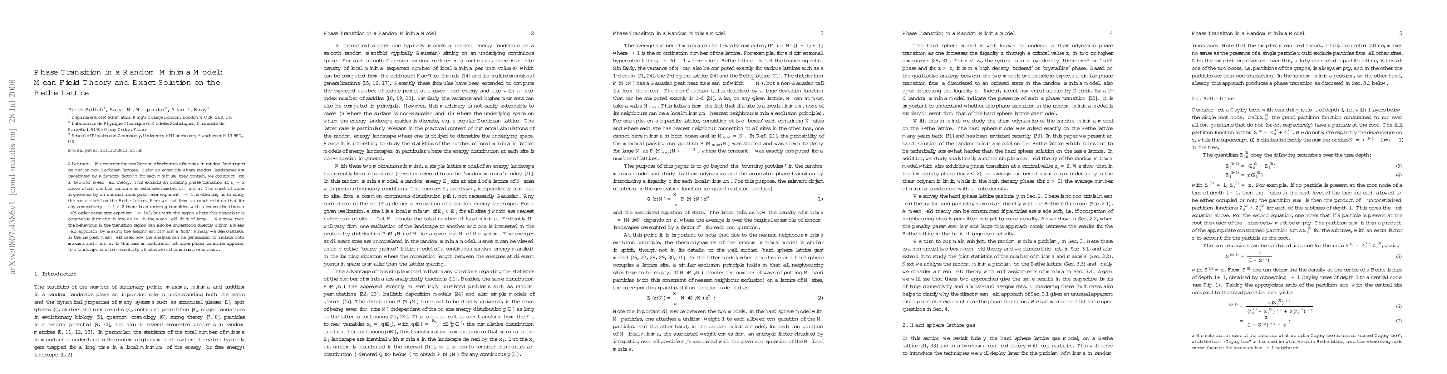 This paper explores phase transitions in random minima models on non-Euclidean lattices, revealing an ordering transition at $z=2$ in a mean field theory. An exact solution on the Bethe lattice shows a conventional transition with $\beta=1/2$, though the observable region shrinks with increasing connectivity.