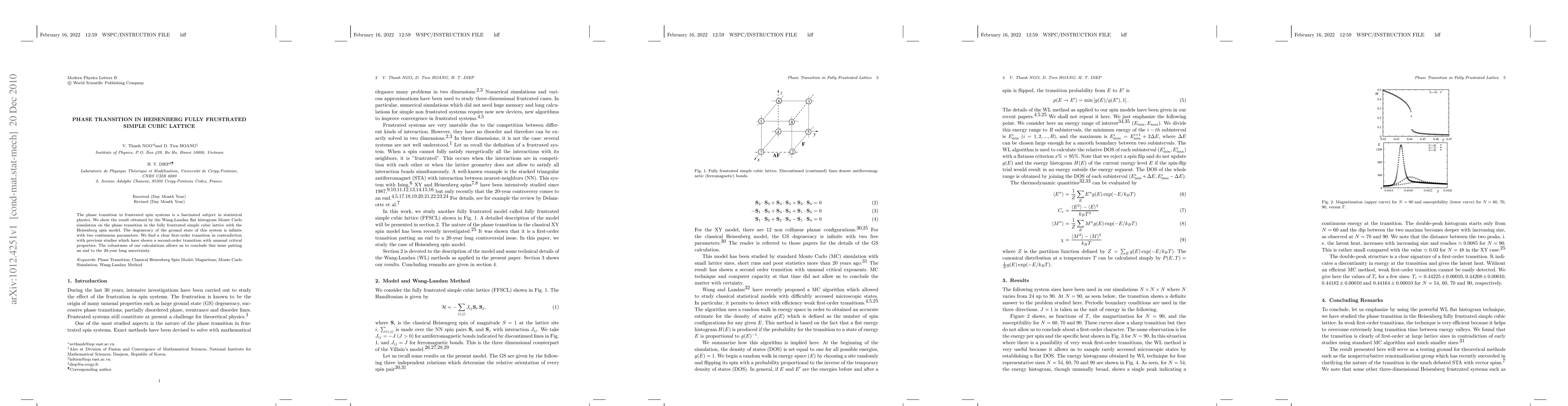 Researchers used a computational method to study the Heisenberg spin model on a fully frustrated simple cubic lattice, finding a clear first-order transition in contradiction to previous studies that showed a second-order transition.