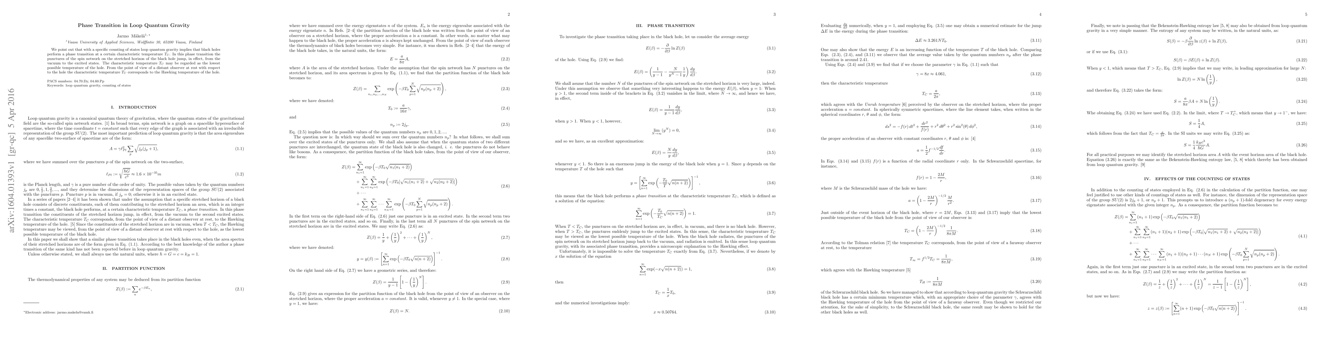 Loop quantum gravity suggests black holes undergo a phase transition at a characteristic temperature $T_C$, where spin network punctures transition from vacuum to excited states. This temperature corresponds to the lowest possible temperature of the black hole and aligns with the Hawking temperature observed by distant observers.