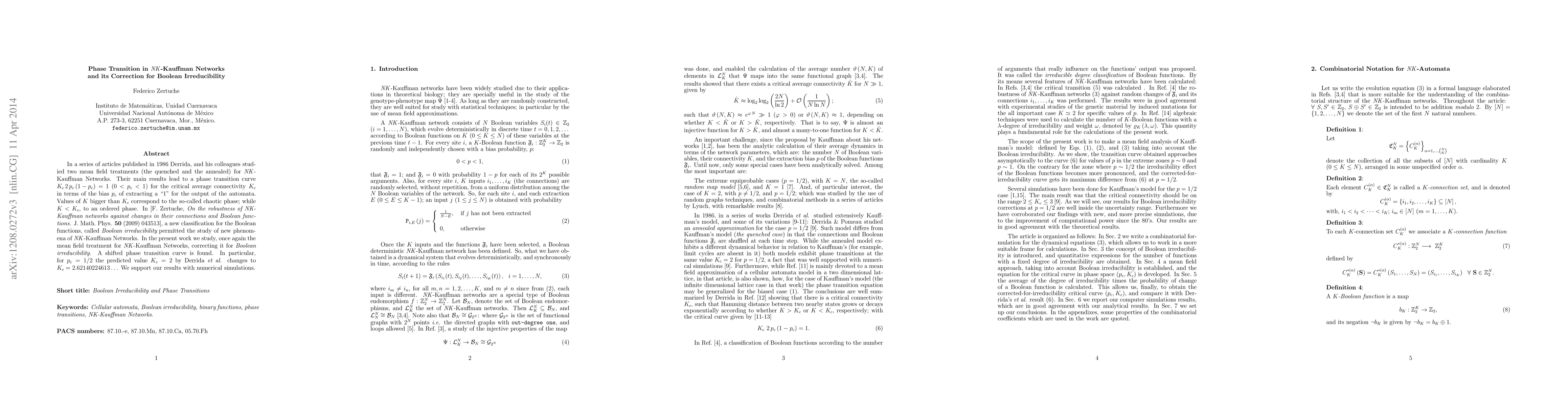 This paper revisits the phase transition in NK-Kauffman Networks, correcting the mean field treatment for Boolean irreducibility. It finds a shifted critical average connectivity value, $K_c = 2.62140224613 \dots$ for $p_c = 1/2$, compared to the previously predicted $K_c = 2$.