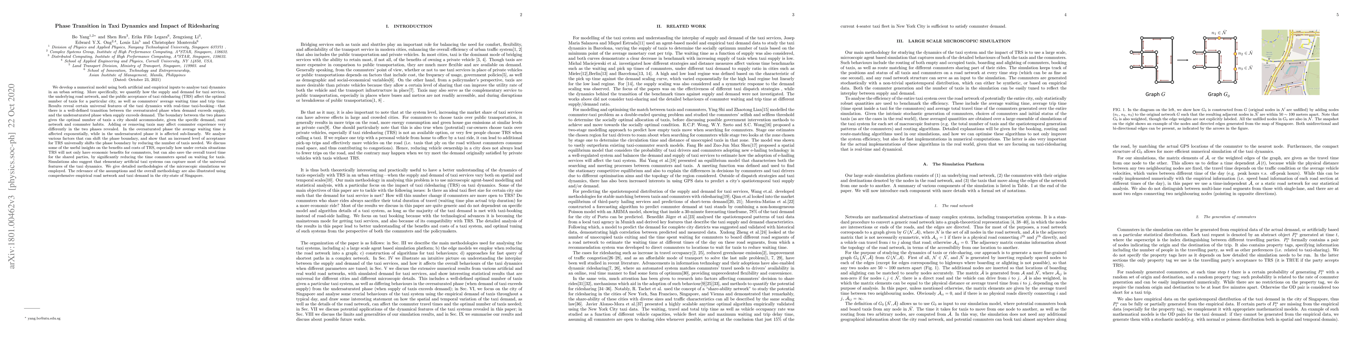 We develop a numerical model using both artificial and empirical inputs to analyze taxi dynamics in an urban setting. More specifically, we quantify how the supply and demand for taxi services, the underlying road network, and the public acceptance of taxi ridesharing (TRS) affect the optimal number of taxis for a particular city, as well as commuters' average waiting time and trip time. Results reveal certain universal features of the taxi dynamics with real-time taxi-booking---that there is a well-defined transition between the oversaturated phase when demand exceeds supply, and the undersaturated phase when supply exceeds demand. The boundary between the two phases gives the optimal number of taxis a city should accommodate, given the specific demand, road network and commuter habits. Adding or removing taxis may affect commuter experience very differently in the two phases revealed. In the oversaturated phase the average waiting time is affected exponentially, while in the undersaturated phase it is affected sub-linearly. We analyze various factors that can shift the phase boundary, and show that an increased level of acceptance for TRS universally shifts the phase boundary by reducing the number of taxis needed. We discuss some of the useful insights on the benefits and costs of TRS, especially how under certain situations TRS will not only have economic benefits for commuters, but can also save the overall travel time for the shared parties, by significantly reducing the time commuters spend on waiting for taxis. Our simulations also suggest that simple artificial taxi systems can capture most of the universal features of the taxi dynamics. The relevance of the assumptions and the overall methodology are also illustrated using the empirical road network and taxi demand in Singapore.