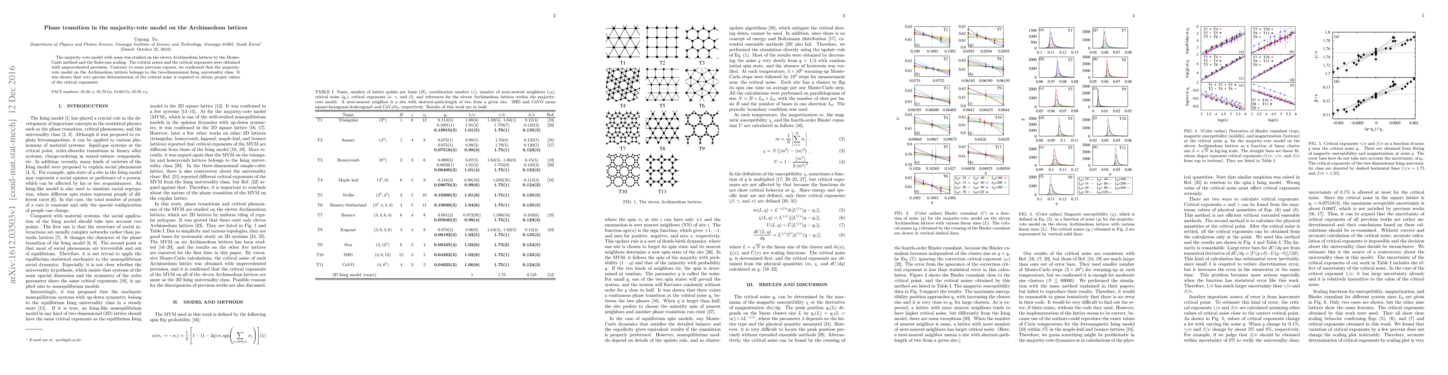 This study investigates the phase transition in the majority-vote model on Archimedean lattices using Monte-Carlo simulations, revealing precise critical noises and exponents. Contrary to earlier claims, it confirms the model's alignment with the two-dimensional Ising universality class.