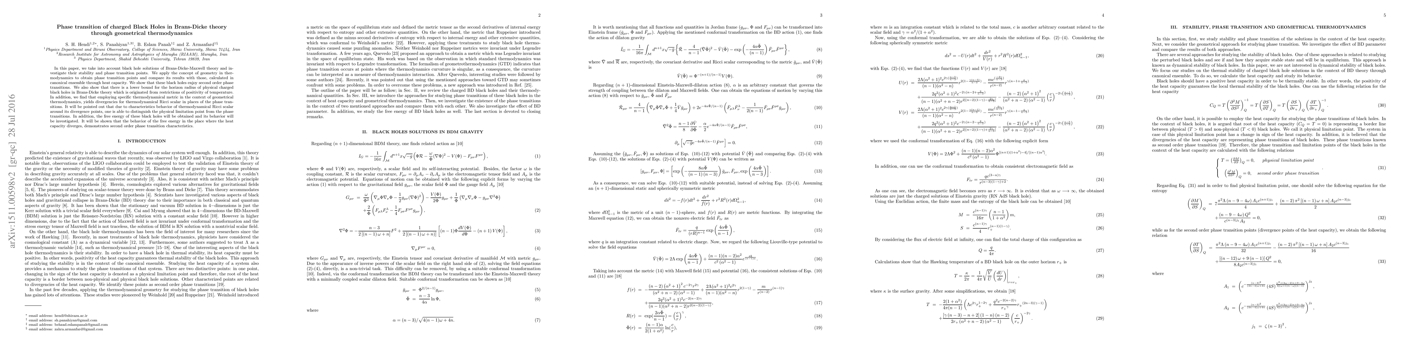 This paper explores the stability and phase transition points of charged black holes in Brans-Dicke-Maxwell theory using geometrical thermodynamics. It demonstrates second-order phase transitions and identifies a lower bound for the horizon radius, revealing the divergence of the thermodynamical Ricci scalar at phase transition points.