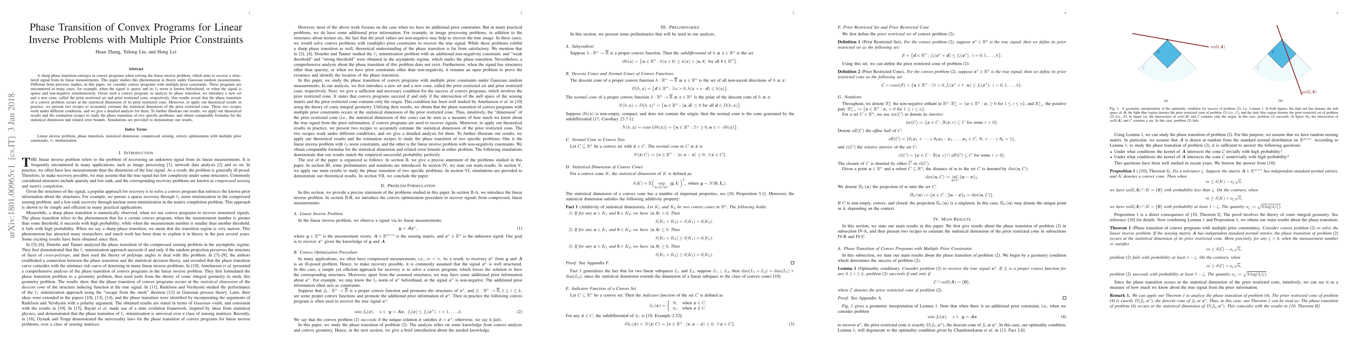 A new theory explains when convex optimization problems for linear inverse problems with multiple prior constraints have a sharp phase transition, which occurs at the statistical dimension of the prior restricted cone.