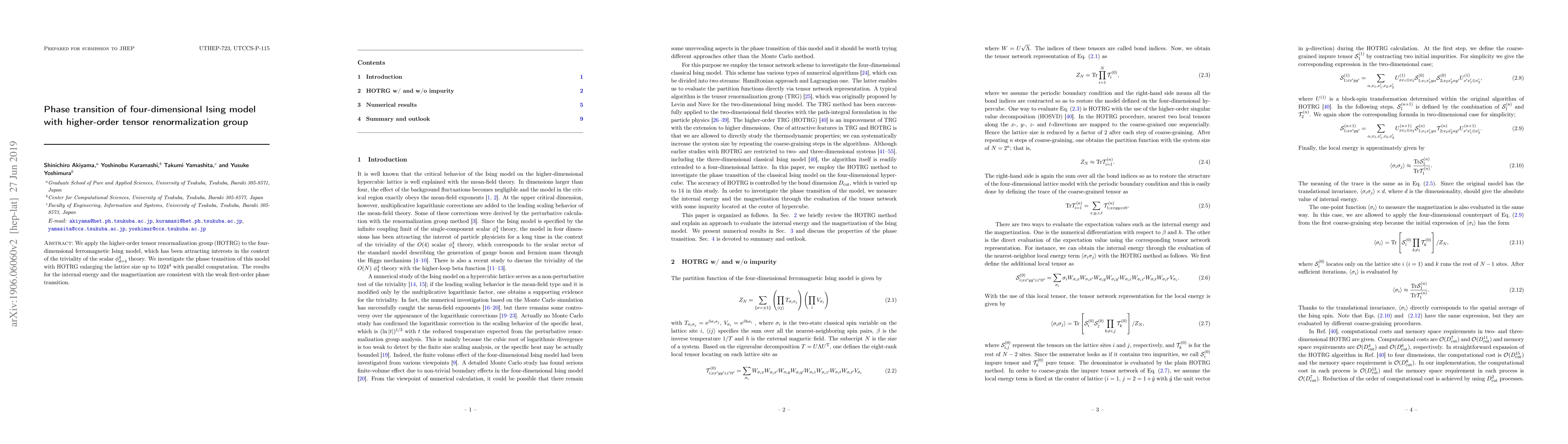 This study uses the higher-order tensor renormalization group (HOTRG) to analyze the four-dimensional Ising model, finding evidence of a weak first-order phase transition through lattice sizes up to $1024^4$ via parallel computation. Results for internal energy and magnetization support this phase transition.