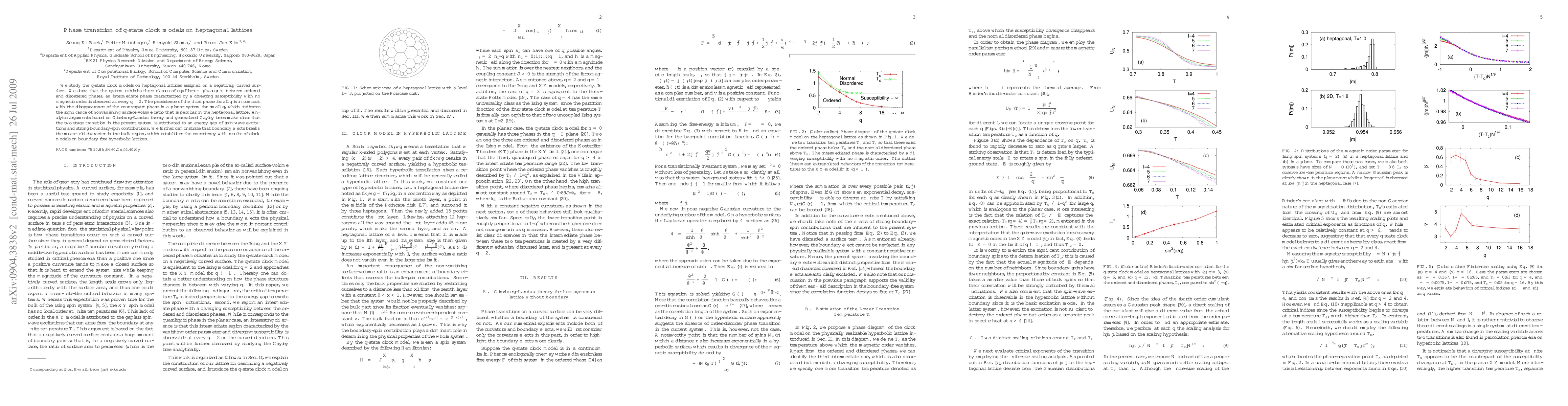 This paper investigates $q$-state clock models on heptagonal lattices on negatively curved surfaces, revealing an intermediate phase between ordered and disordered phases for $q \ge 2$. This phase persists for all $q$ unlike in planar systems, highlighting the impact of the lattice's curvature. The study uses Ginzburg-Landau theory and generalized Cayley trees to explain the two-stage phase transition due to spin-wave excitations and boundary effects.