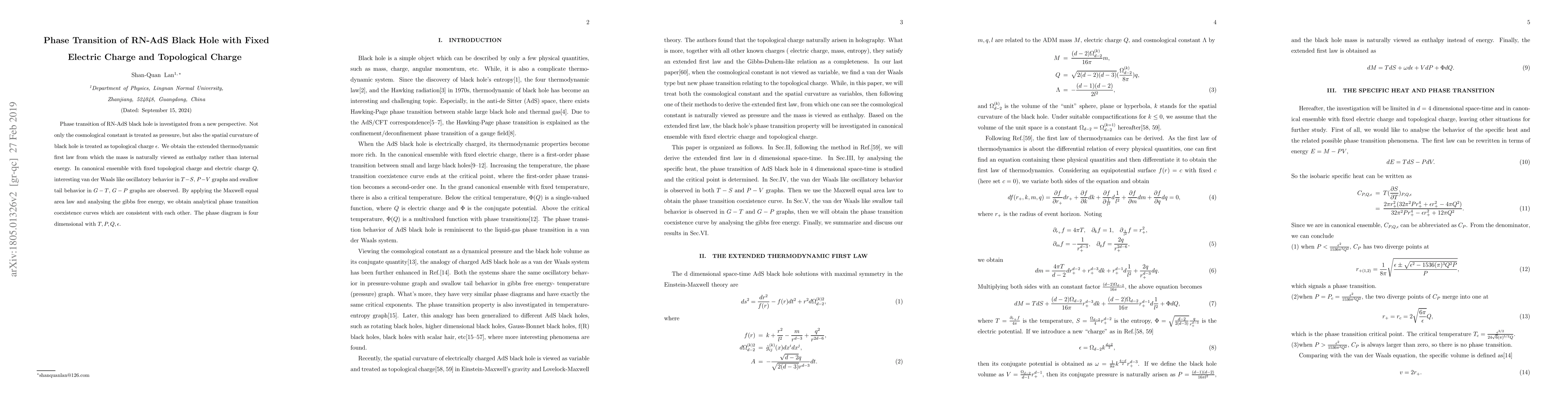 Researchers study black holes with electric charge and topological charge, finding a van der Waals-like system with oscillatory behavior in thermodynamic graphs, and derive phase transition curves using the Maxwell equal area law.