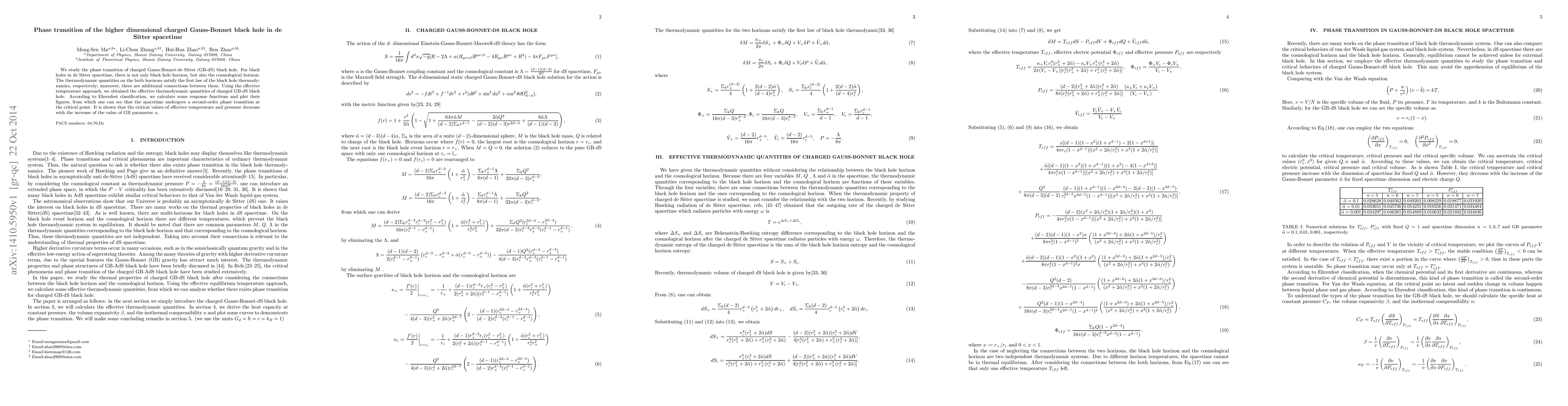 This paper investigates the phase transition of charged Gauss-Bonnet black holes in de Sitter spacetime, revealing a second-order phase transition at a critical point. The study uses effective thermodynamic quantities and response functions to show that the critical values decrease with increasing Gauss-Bonnet parameter.