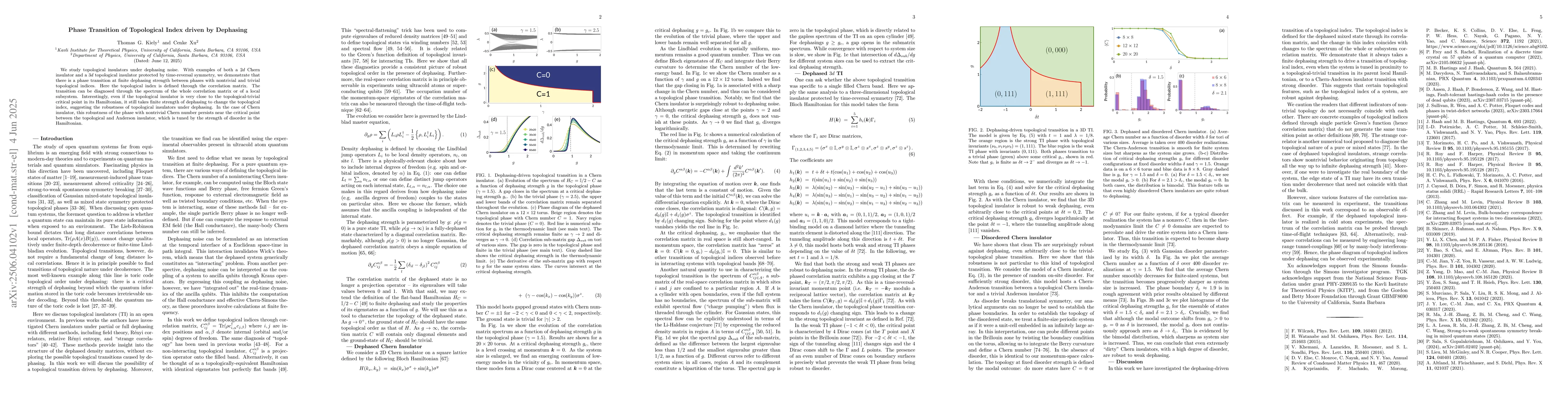 The paper presents a method to diagnose topological phase transitions driven by dephasing noise, utilizing the correlation matrix spectrum.