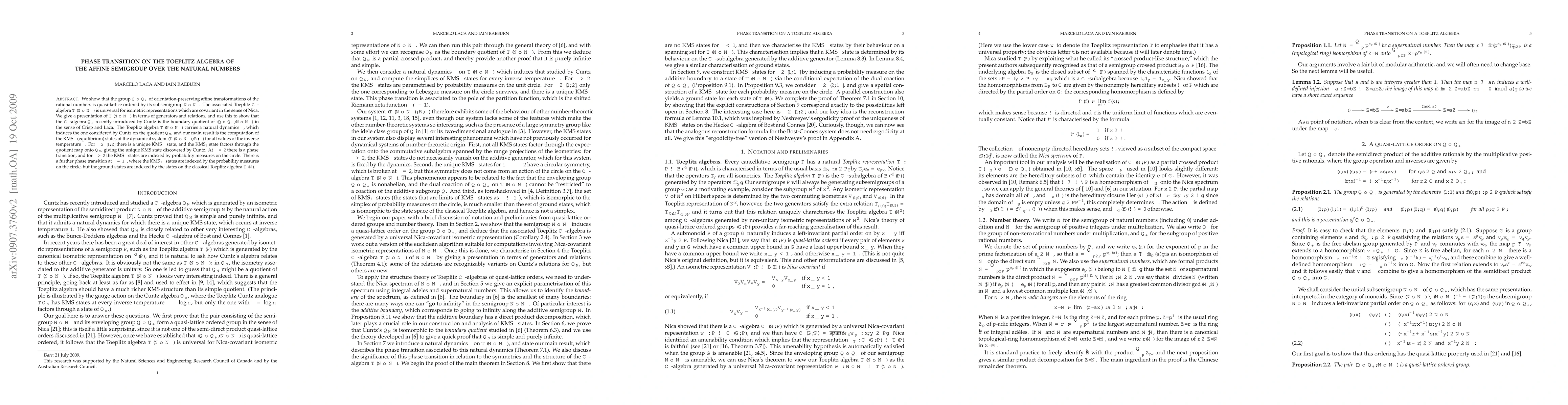 We show that the group ${\mathbb Q \rtimes \mathbb Q^*_+}$ of orientation-preserving affine transformations of the rational numbers is quasi-lattice ordered by its subsemigroup ${\mathbb N \rtimes \mathbb N^\times}$. The associated Toeplitz $C^*$-algebra ${\mathcal T}({\mathbb N \rtimes \mathbb N^\times})$ is universal for isometric representations which are covariant in the sense of Nica. We give a presentation of this Toeplitz algebra in terms of generators and relations, and use this to show that the $C^*$-algebra ${\mathcal Q_\mathbb N}$ recently introduced by Cuntz is the boundary quotient of $({\mathbb Q \rtimes \mathbb Q^*_+}, {\mathbb N \rtimes \mathbb N^\times})$ in the sense of Crisp and Laca. The Toeplitz algebra ${\mathcal T}({\mathbb N \rtimes \mathbb N^\times})$ carries a natural dynamics $\sigma$, which induces the one considered by Cuntz on the quotient ${\mathcal Q_\mathbb N}$, and our main result is the computation of the KMS$_\beta$ (equilibrium) states of the dynamical system $({\mathcal T}({\mathbb N \rtimes \mathbb N^\times}), {\mathbb R},\sigma)$ for all values of the inverse temperature $\beta$. For $\beta \in [1, 2]$ there is a unique KMS$_\beta$ state, and the KMS$_1$ state factors through the quotient map onto ${\mathcal Q_\mathbb N}$, giving the unique KMS state discovered by Cuntz. At $\beta =2$ there is a phase transition, and for $\beta>2$ the KMS$_\beta$ states are indexed by probability measures on the circle. There is a further phase transition at $\beta=\infty$, where the KMS$_\infty$ states are indexed by the probability measures on the circle, but the ground states are indexed by the states on the classical Toeplitz algebra ${\mathcal T}(\mathbb N)$.