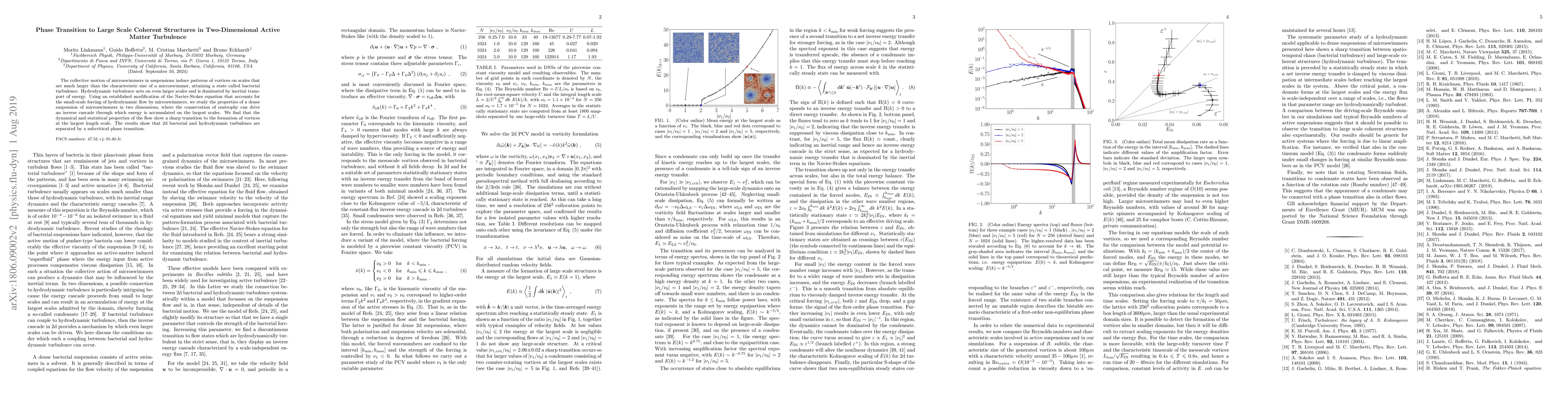 The collective motion of microswimmers in suspensions induce patterns of vortices on scales that are much larger than the characteristic size of a microswimmer, attaining a state called bacterial turbulence. Hydrodynamic turbulence acts on even larger scales and is dominated by inertial transport of energy. Using an established modification of the Navier-Stokes equation that accounts for the small scale forcing of hydrodynamic flow by microswimmers, we study the properties of a dense supensions of microswimmers in two dimensions, where the conservation of enstrophy can drive an inverse cascade through which energy is accumulated on the largest scales. We find that the dynamical and statistical properties of the flow show a sharp transition to the formation of vortices at the largest length scale. The results show that 2d bacterial and hydrodynamic turbulence are separated by a subcritical phase transition.