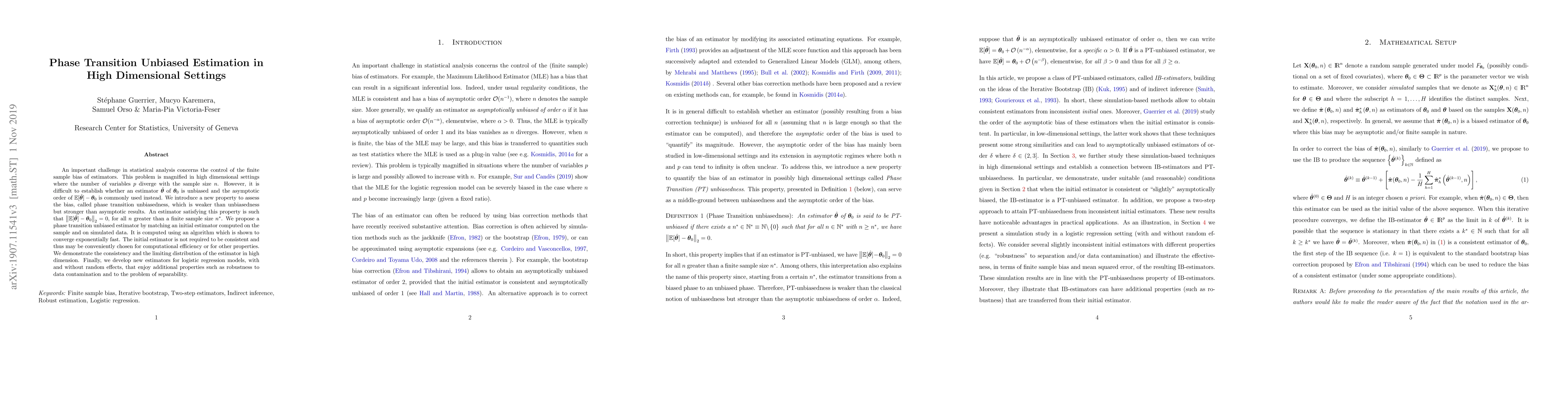 This paper introduces the concept of phase transition unbiasedness to address the bias in high-dimensional estimators, proposing a new phase transition unbiased estimator using an iterative bootstrap method. The estimator is shown to be consistent and robust, demonstrated through new logistic regression models and simulations.