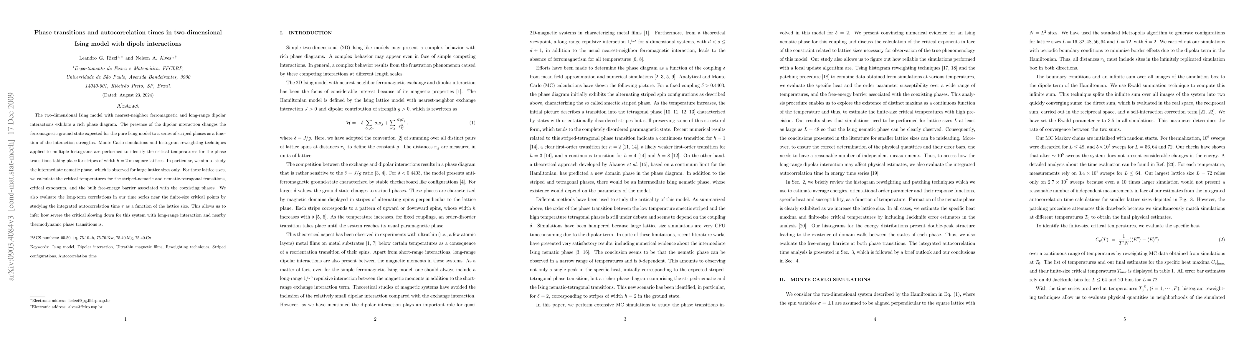 Researchers studied the two-dimensional Ising model with dipole interactions to understand its phase transitions and critical slowing down near finite-size critical points. They found that the system exhibits striped phases and severe critical slowing down due to long-range interactions.