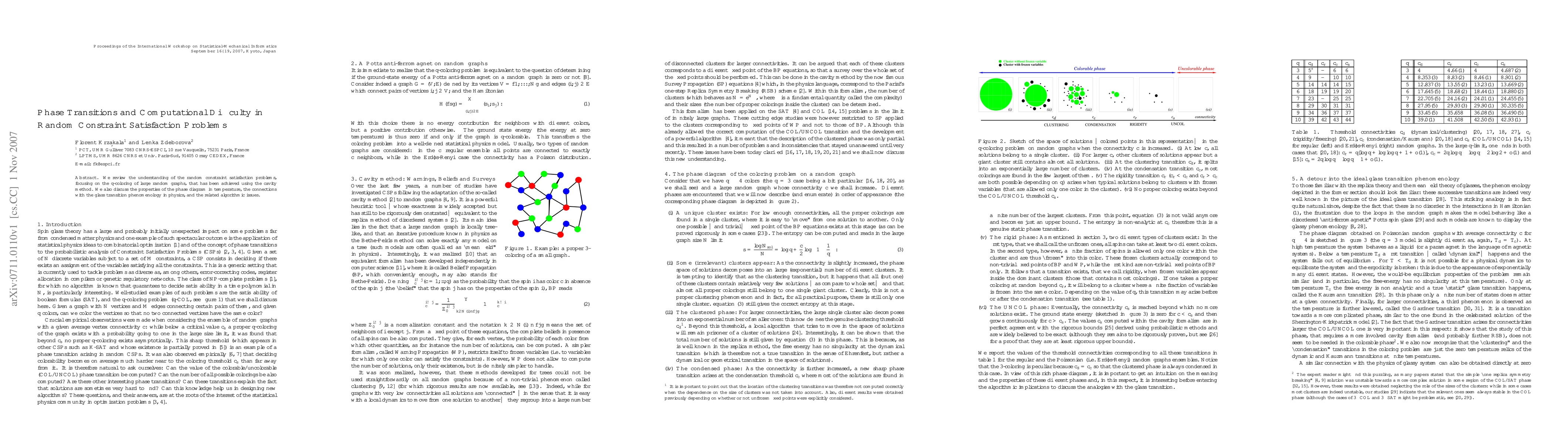 Summary: This paper reviews the application of the cavity method to understand phase transitions in random constraint satisfaction problems, specifically q-coloring of large random graphs, and discusses its connection to glass transition phenomena and computational difficulty.
