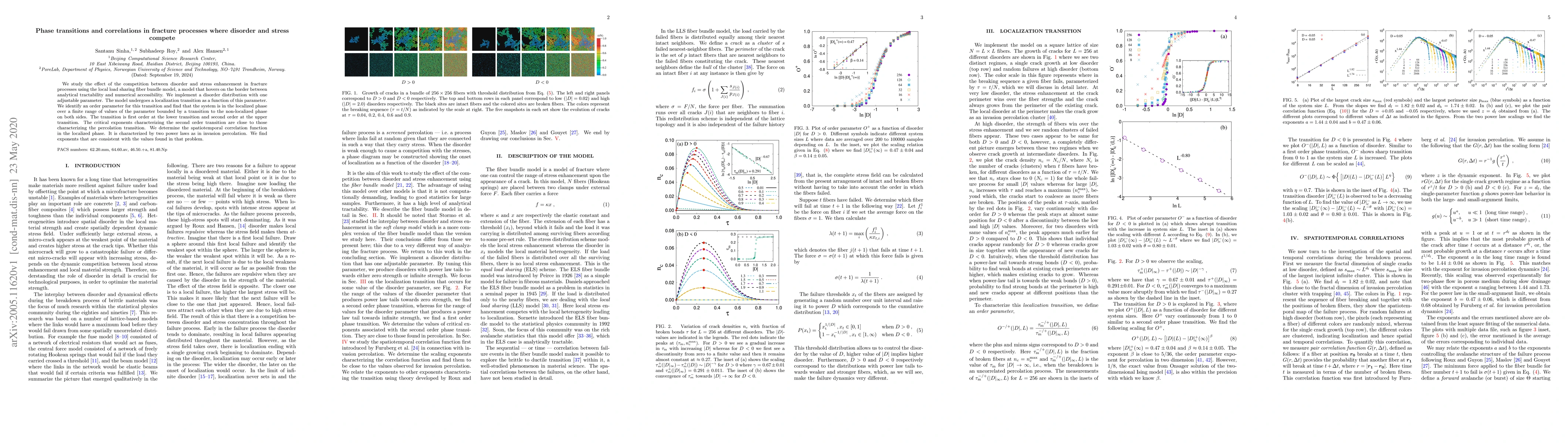 This paper investigates the interplay between disorder and stress in fracture processes using a fiber bundle model, identifying a localization transition with distinct first and second-order phases. The second-order transition's critical exponents resemble those of percolation, and the localized phase exhibits spatiotemporal correlations akin to invasion percolation.