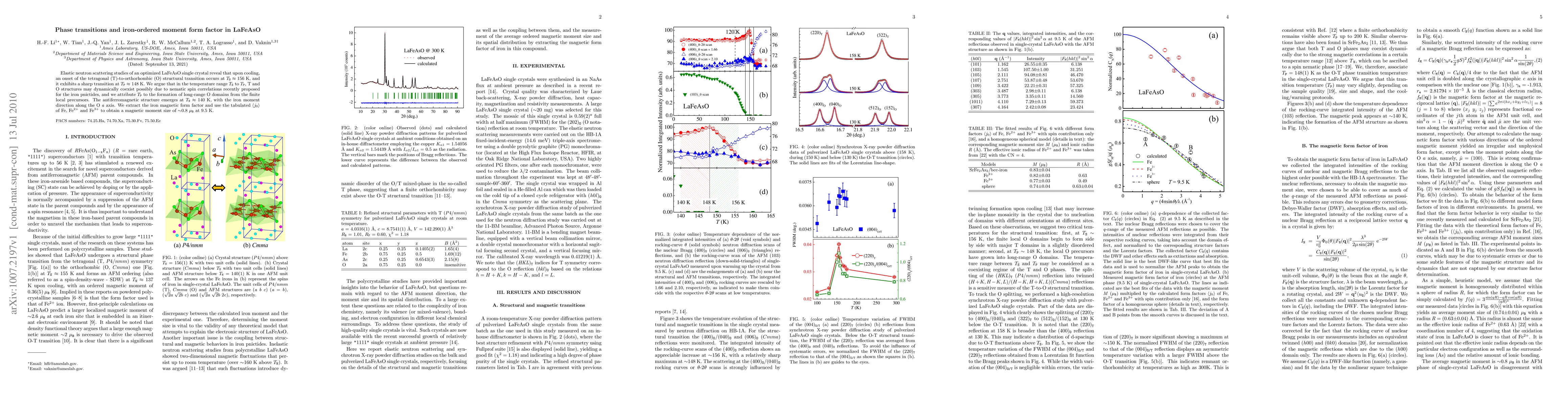 Elastic neutron scattering studies of an optimized LaFeAsO single crystal reveal that upon cooling, an onset of the tetragonal (T)-to-orthorhombic (O) structural transition occurs at $T_\texttt{S} \approx 156$ K, and it exhibits a sharp transition at $T_\texttt{P} \approx 148$ K. We argue that in the temperature range $T_\texttt{S}$ to $T_\texttt{P}$, T and O structures may dynamically coexist possibly due to nematic spin correlations recently proposed for the iron pnictides, and we attribute $T_\texttt{P}$ to the formation of long-range O domains from the finite local precursors. The antiferromagnetic structure emerges at $T_\texttt{N} \approx 140$ K, with the iron moment direction along the O \emph{a} axis. We extract the iron magnetic form factor and use the tabulated $\langle j_0\rangle$ of Fe, Fe$^{2+}$ and Fe$^{3+}$ to obtain a magnetic moment size of $\sim$0.8 $\mu_\texttt{B}$ at 9.5 K.