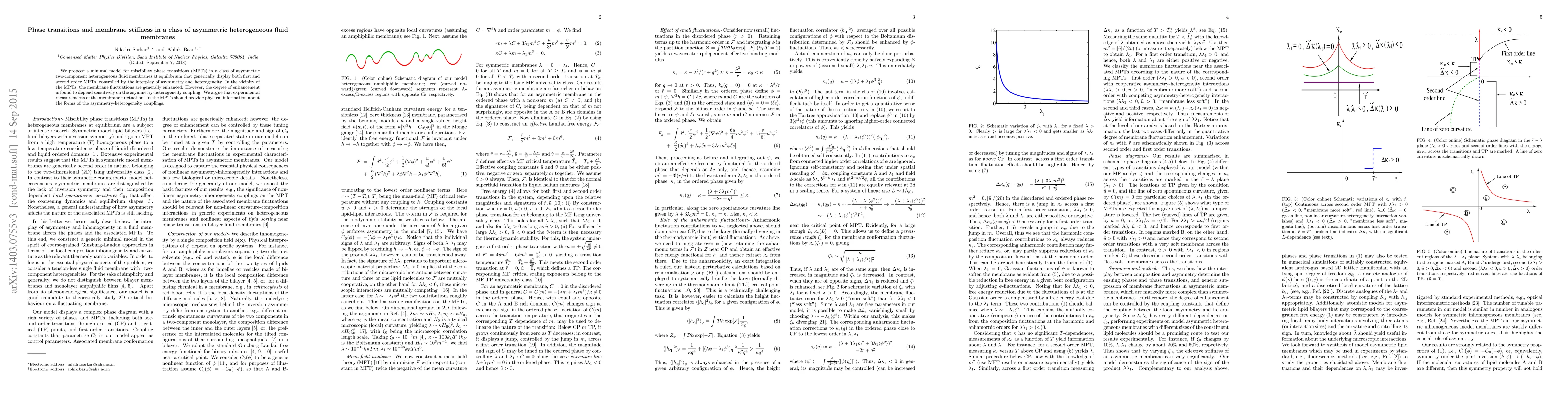 We propose a minimal model for miscibility phase transitions (MPTs) in a class of asymmetric two-component heterogeneous fluid membranes at equilibrium that generically display both first and second order MPTs, controlled by the interplay of asymmetry and heterogeneity. In the vicinity of the MPTs, the membrane fluctuations are generally enhanced. However, the degree of enhancement is found to depend sensitively on the asymmetry-heterogeneity coupling. We argue that experimental measurements of the membrane fluctuations at the MPTs should provide physical information about the forms of the asymmetry-heterogeneity couplings.