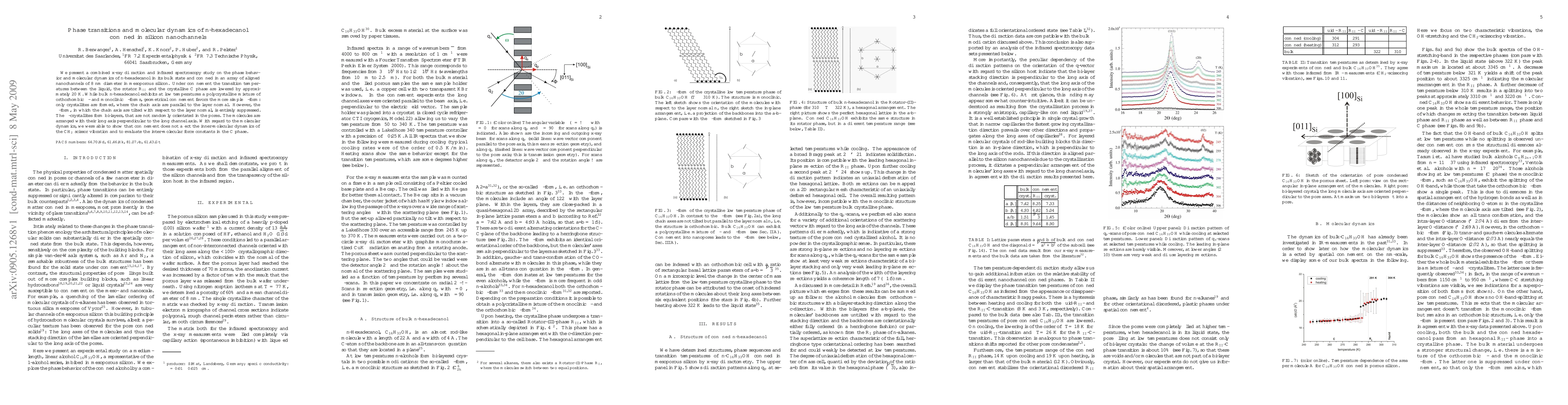 This study examines the phase transitions and molecular dynamics of n-hexadecanol in bulk and confined within 8 nm silicon nanochannels, revealing lowered transition temperatures and a preference for the beta-form under confinement, while maintaining inner-molecular dynamics.