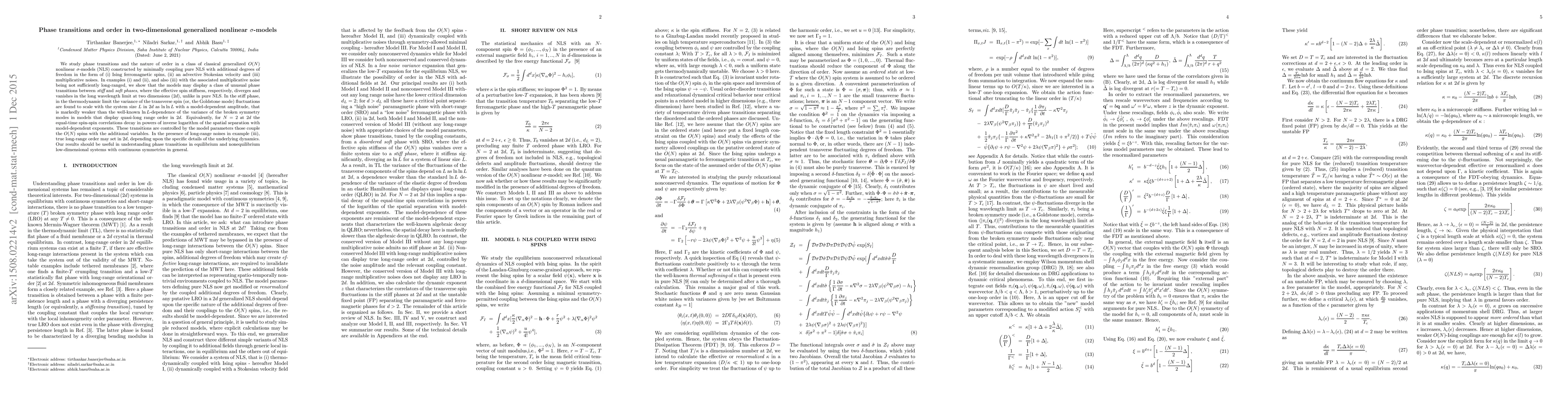 Two-dimensional generalized nonlinear $ au$-models exhibit unusual phase transitions between stiff and soft phases, characterized by diverging and vanishing effective spin stiffness, respectively, unlike in pure NLS.