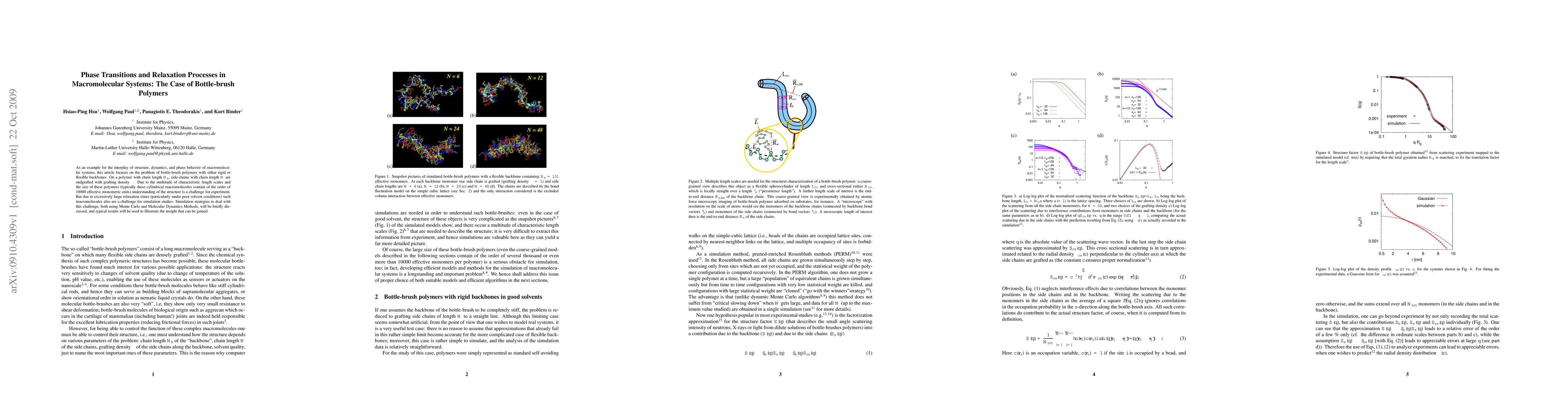 This research explores the complex structure and dynamics of bottle-brush polymers, which have both rigid and flexible backbones, using simulation methods like Monte Carlo and Molecular Dynamics. Despite challenges posed by their large size and slow relaxation times, these simulations provide insights into the phase transitions and relaxation processes in such macromolecular systems.
