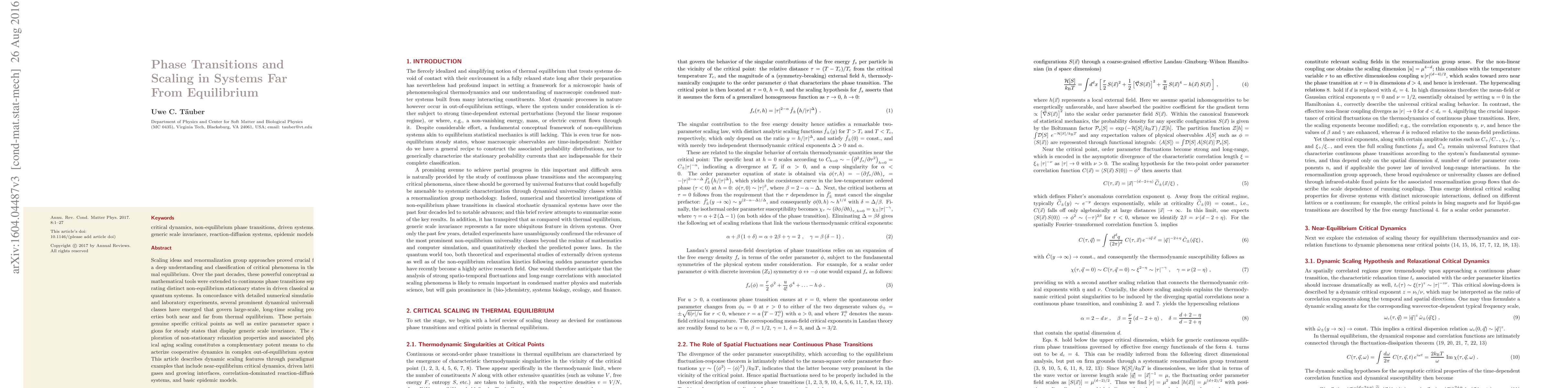 This paper explores the application of scaling and renormalization group methods to understand phase transitions in non-equilibrium systems, identifying several dynamical universality classes and discussing their relevance through examples like driven lattice gases and reaction-diffusion systems. It emphasizes the importance of dynamic scaling and physical aging in characterizing the cooperative dynamics of out-of-equilibrium systems.