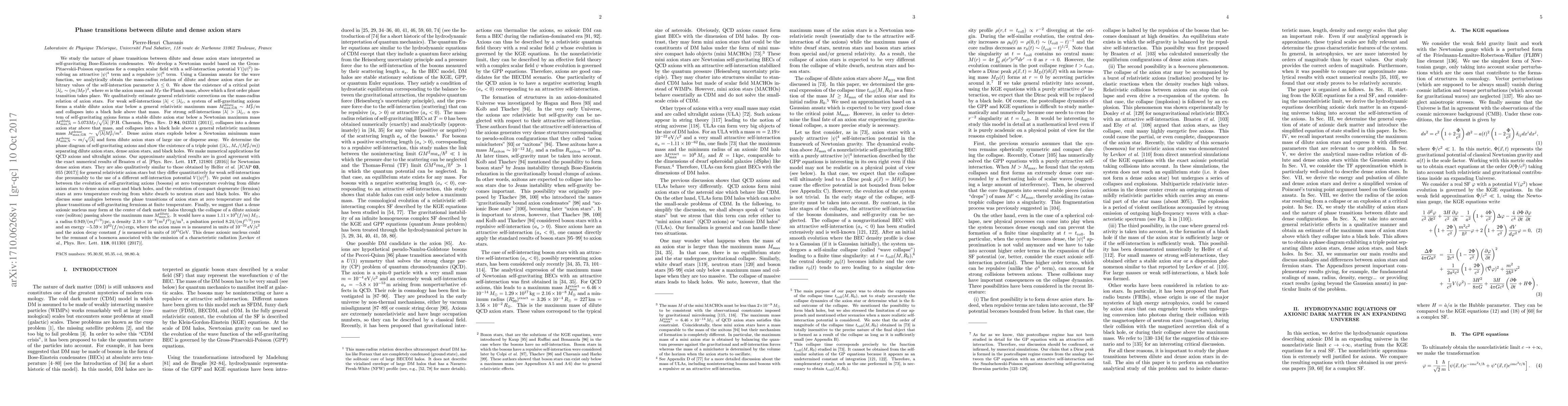 This paper explores the phase transitions between dilute and dense axion stars, modeled as self-gravitating Bose-Einstein condensates, using a Newtonian approach based on the Gross-Pitaevskii-Poisson equations. It identifies a critical self-interaction parameter that triggers a phase transition, determining the conditions under which axion stars collapse into black holes or dense axion stars.