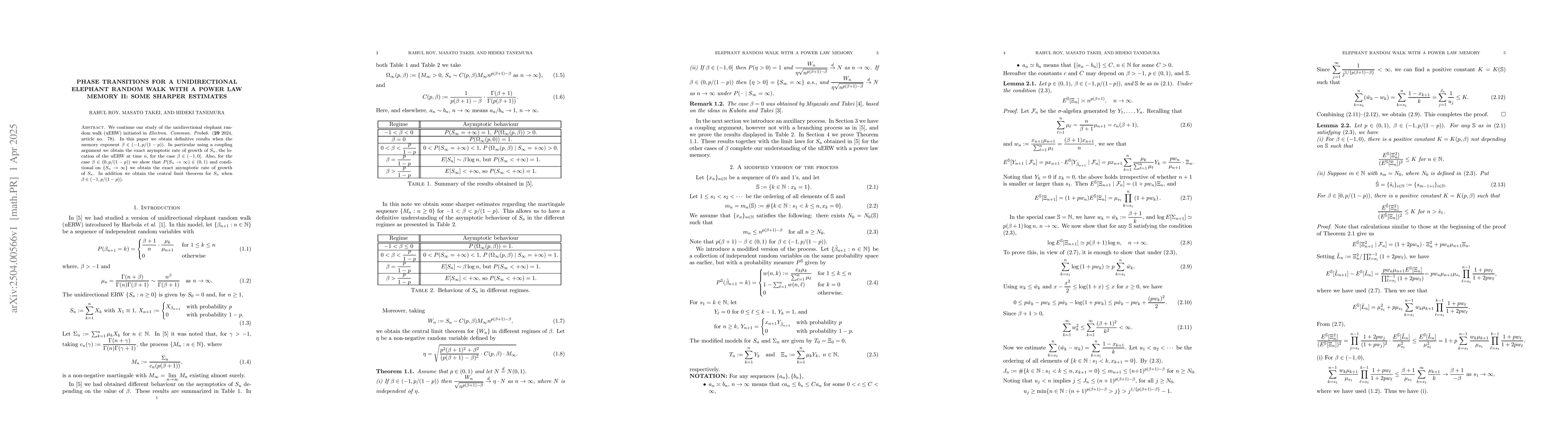 Definitive results and sharper estimates for phase transitions in uERW with power law memory using a coupling argument.