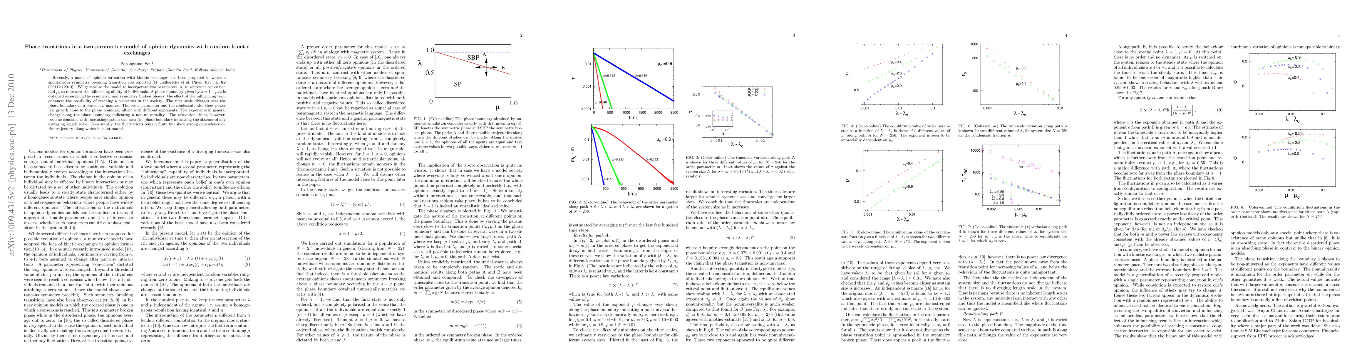A model of opinion formation with kinetic exchanges was developed, incorporating realistic parameters.
