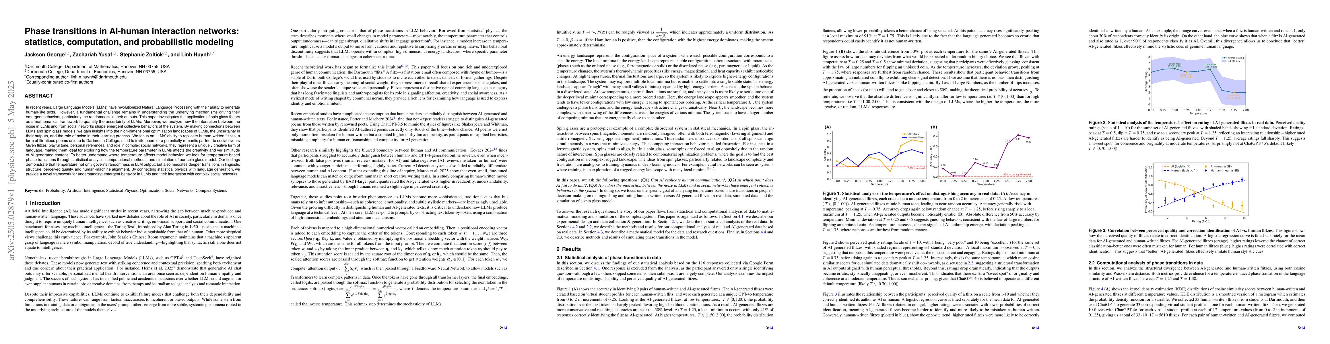 The paper introduces a spin glass model to characterize phase transition behavior in AI-generated text, linking statistical physics with language generation and social network theory.