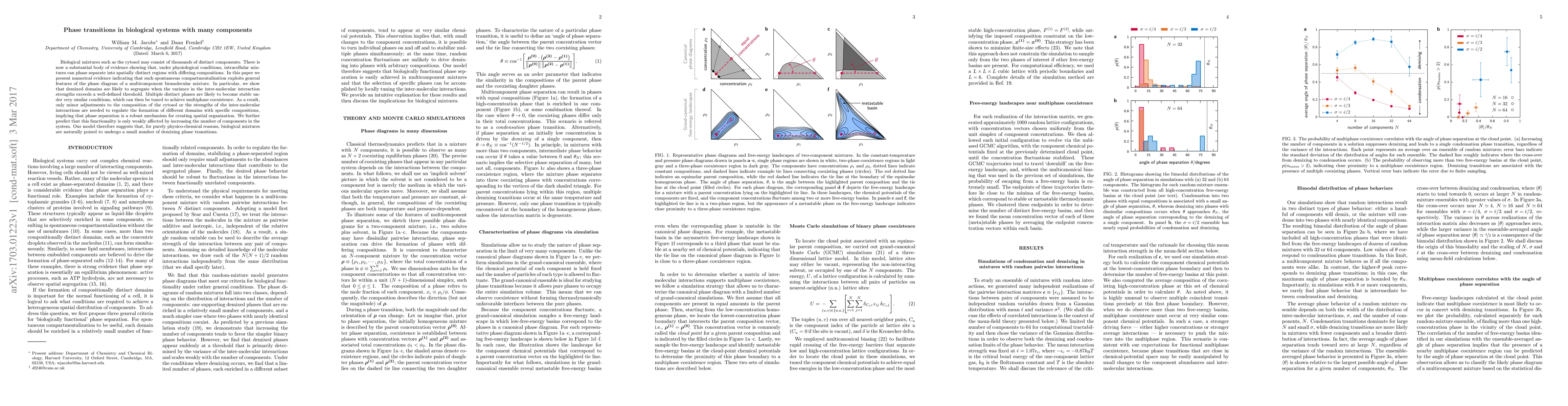 Biological mixtures such as the cytosol may consist of thousands of distinct components. There is now a substantial body of evidence showing that, under physiological conditions, intracellular mixtures can phase separate into spatially distinct regions with differing compositions. In this paper we present numerical evidence indicating that such spontaneous compartmentalization exploits general features of the phase diagram of a multicomponent biomolecular mixture. In particular, we show that demixed domains are likely to segregate when the variance in the inter-molecular interaction strengths exceeds a well-defined threshold. Multiple distinct phases are likely to become stable under very similar conditions, which can then be tuned to achieve multiphase coexistence. As a result, only minor adjustments to the composition of the cytosol or the strengths of the inter-molecular interactions are needed to regulate the formation of different domains with specific compositions, implying that phase separation is a robust mechanism for creating spatial organization. We further predict that this functionality is only weakly affected by increasing the number of components in the system. Our model therefore suggests that, for purely physico-chemical reasons, biological mixtures are naturally poised to undergo a small number of demixing phase transitions.
