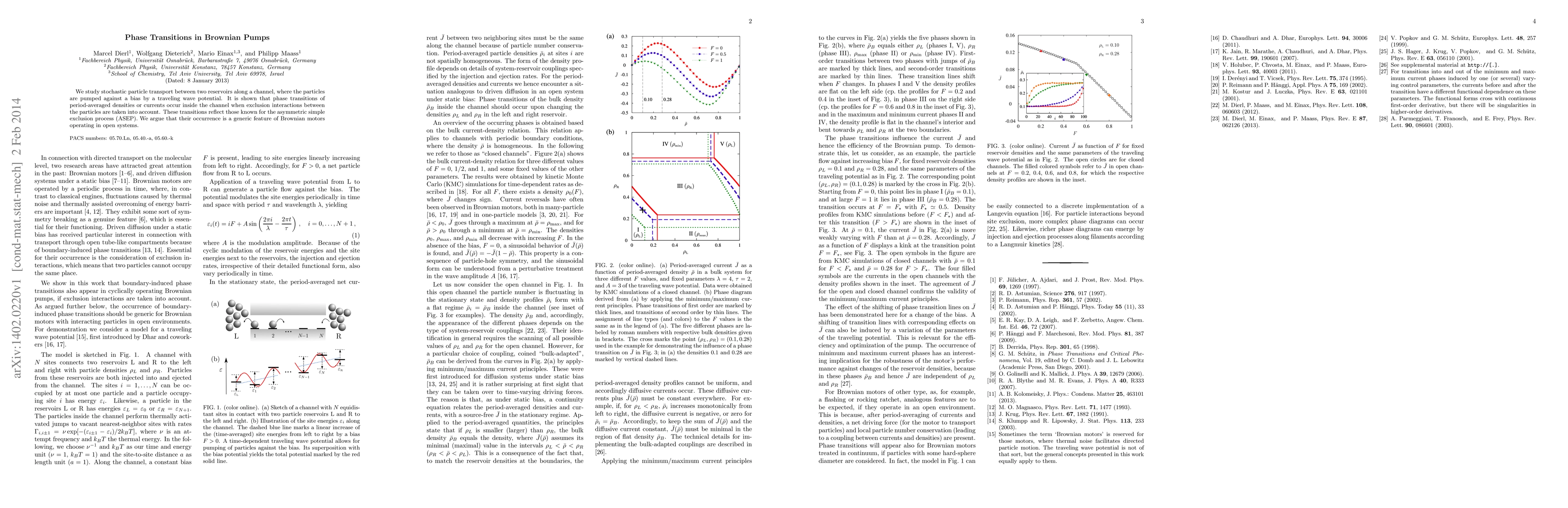 Researchers studied how particles move in a channel with a biasing wave, finding phase transitions that occur when particles interact with each other. These transitions are similar to known patterns in another type of particle movement, suggesting they may be common in certain types of biological motors.