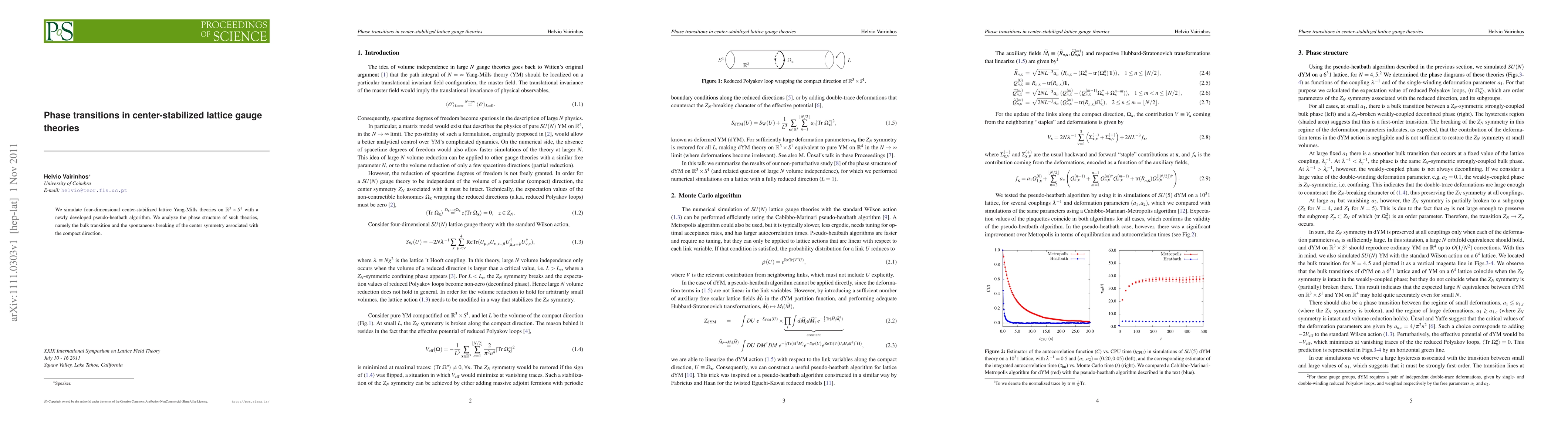 We simulate four-dimensional center-stabilized lattice Yang-Mills theories on R^3 x S^1 with a newly developed pseudo-heatbath algorithm. We analyze the phase structure of such theories, namely the bulk transition and the spontaneous breaking of the center symmetry associated with the compact direction.