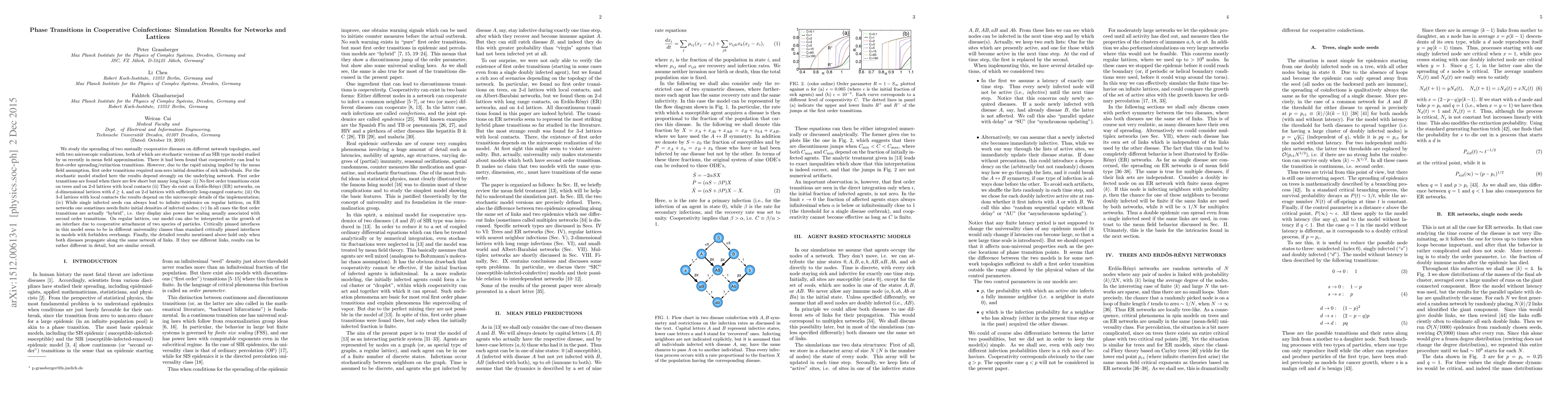 This paper investigates the spreading dynamics of two cooperative diseases on various network topologies, revealing that first-order transitions occur under specific network conditions, such as long-range contacts or high-dimensional lattices, while second-order transitions are hybrid, displaying power law scaling. The study also finds that the choice of network links significantly influences the transition behavior.