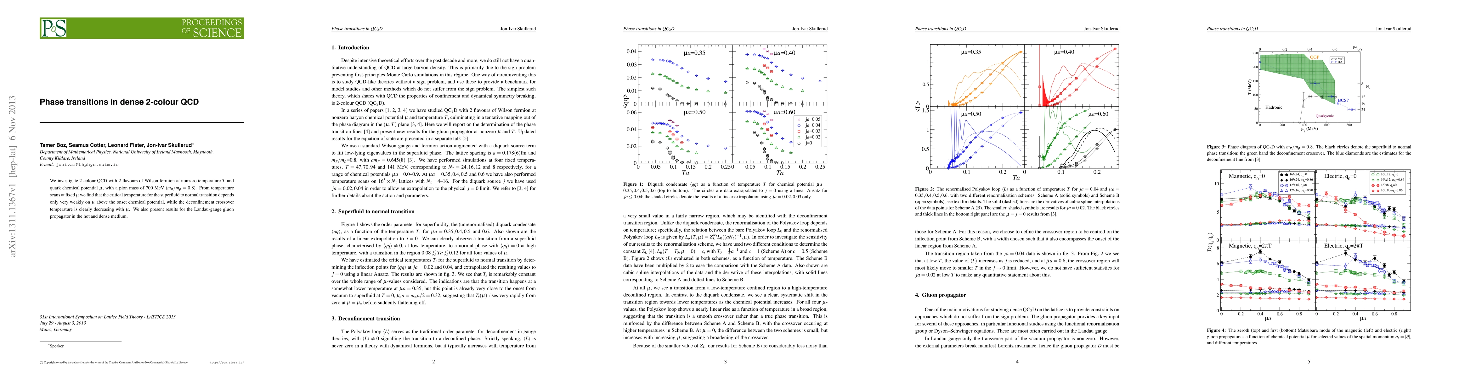 Summary: The study examines phase transitions in dense 2-colour QCD at nonzero temperature and chemical potential, revealing a weak dependence of the superfluid-normal transition on chemical potential and a decreasing deconfinement crossover temperature with increasing chemical potential, alongside analysis of the Landau-gauge gluon propagator in hot and dense conditions.