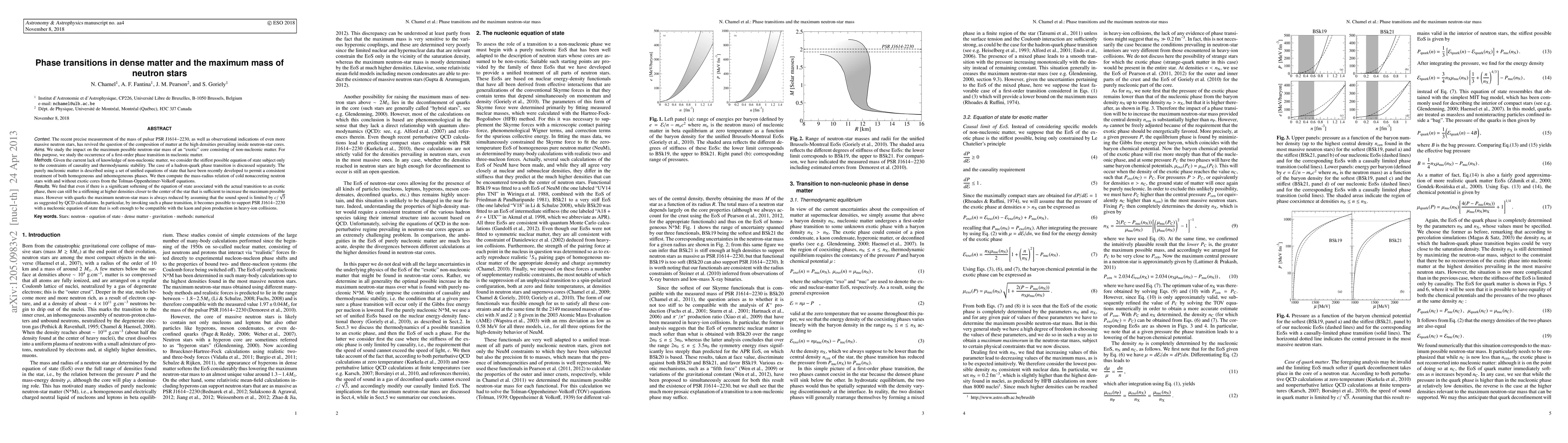 The recent precise measurement of the mass of pulsar PSR J1614$-$2230, as well as observational indications of even more massive neutron stars, has revived the question of the composition of matter at the high densities prevailing inside neutron-star cores. We study the impact on the maximum possible neutron-star mass of an "exotic" core consisting of non-nucleonic matter. For this purpose, we study the occurrence of a first-order phase transition in nucleonic matter. Given the current lack of knowledge of non-nucleonic matter, we consider the stiffest possible equation of state subject only to the constraints of causality and thermodynamic stability. The case of a hadron-quark phase transition is discussed separately. The purely nucleonic matter is described using a set of unified equations of state that have been recently developed to permit a consistent treatment of both homogeneous and inhomogeneous phases. We then compute the mass-radius relation of cold nonaccreting neutron stars with and without exotic cores from the Tolman-Oppenheimer-Volkoff equations. We find that even if there is a significant softening of the equation of state associated with the actual transition to an exotic phase, there can still be a stiffening at higher densities closer to the center of the star that is sufficient to increase the maximum possible mass. However with quarks the maximum neutron-star mass is always reduced by assuming that the sound speed is limited by $c/\sqrt{3}$ as suggested by QCD calculations. In particular, by invoking such a phase transition, it becomes possible to support PSR J1614$-$2230 with a nucleonic equation of state that is soft enough to be compatible with the kaon and pion production in heavy-ion collisions.