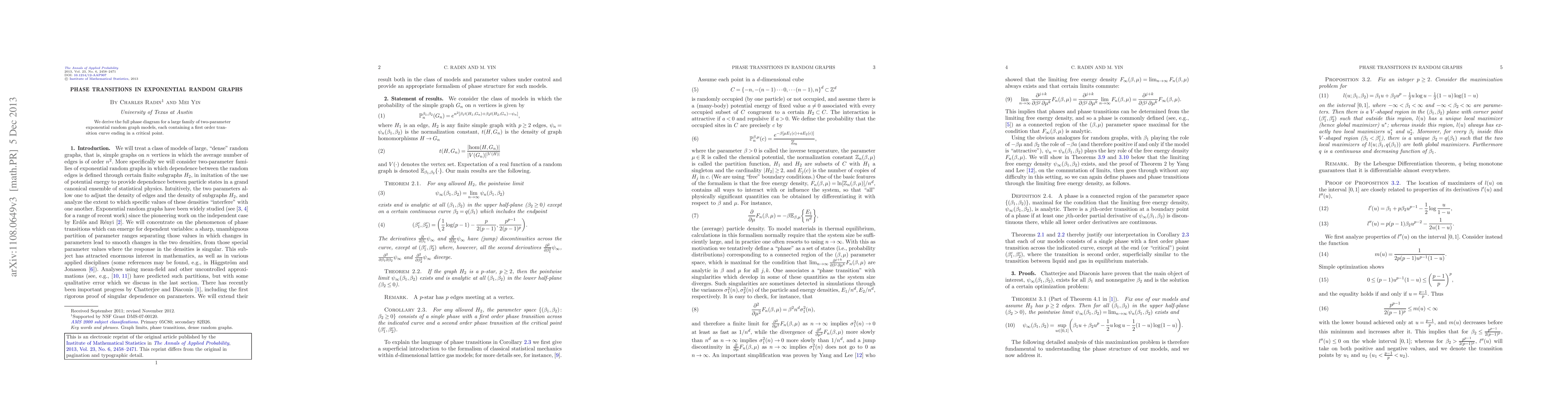 Researchers developed a phase diagram for exponential random graphs with two parameters, revealing critical points with first-order transition curves.